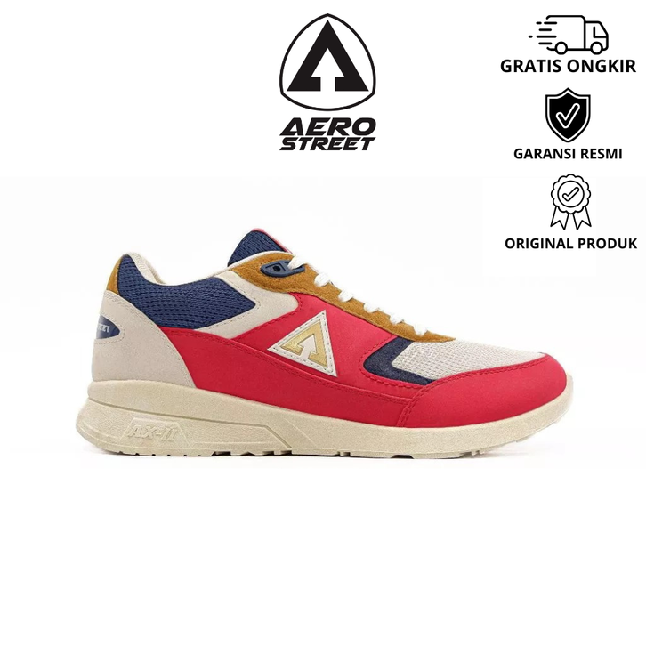 Sepatu Pria Sneaker Original Aerostreet Osaka Krem Merah - Sepatu Aerostreet Pria Casual Osaka Official Store