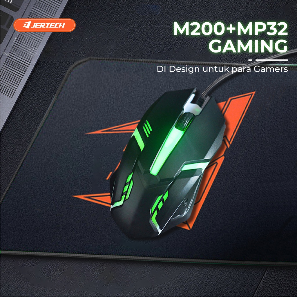 JERTECH - Paket Bundle Mouse Gaming M200 Plus Mousepad MP32 Lampu LED RGB
