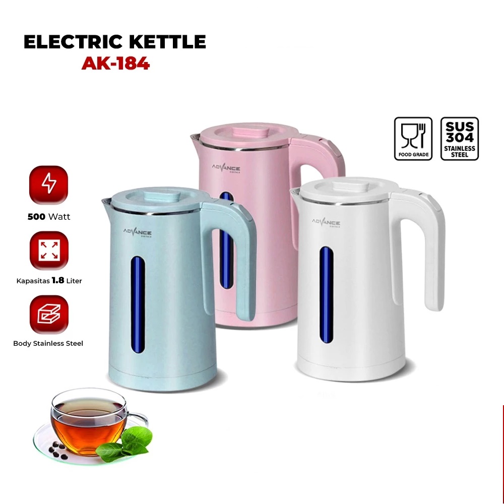 ADVANCE AK184 Teko Listrik 1.8 Liter Stainless Steel 304 Food Grade