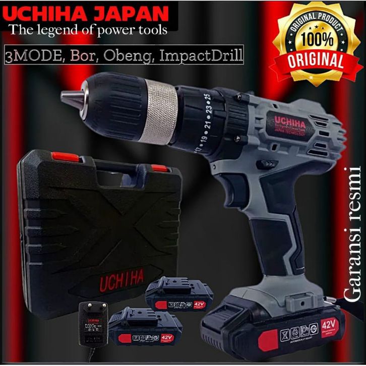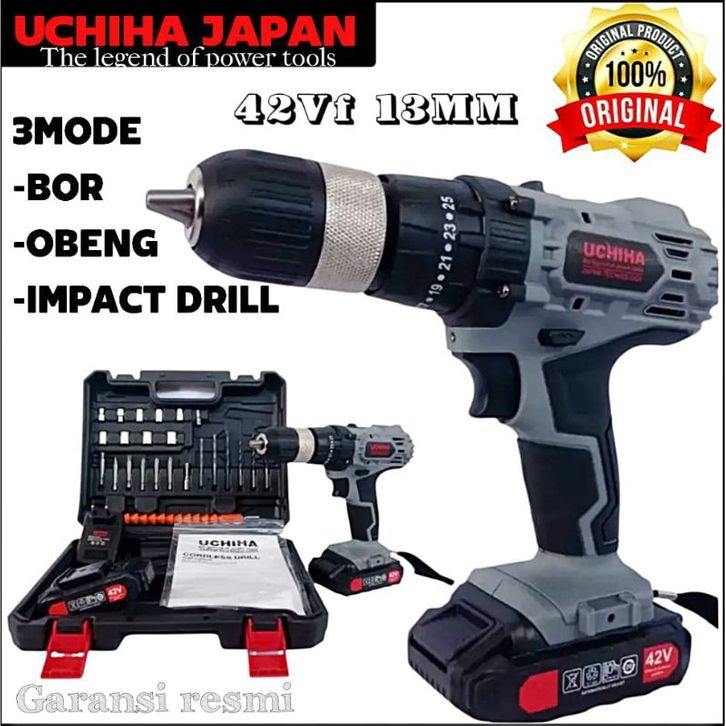 Mesin bor set mata drill UCHIHA 32vol baterai cordless bor INPEX drill beton besi kayu tembok