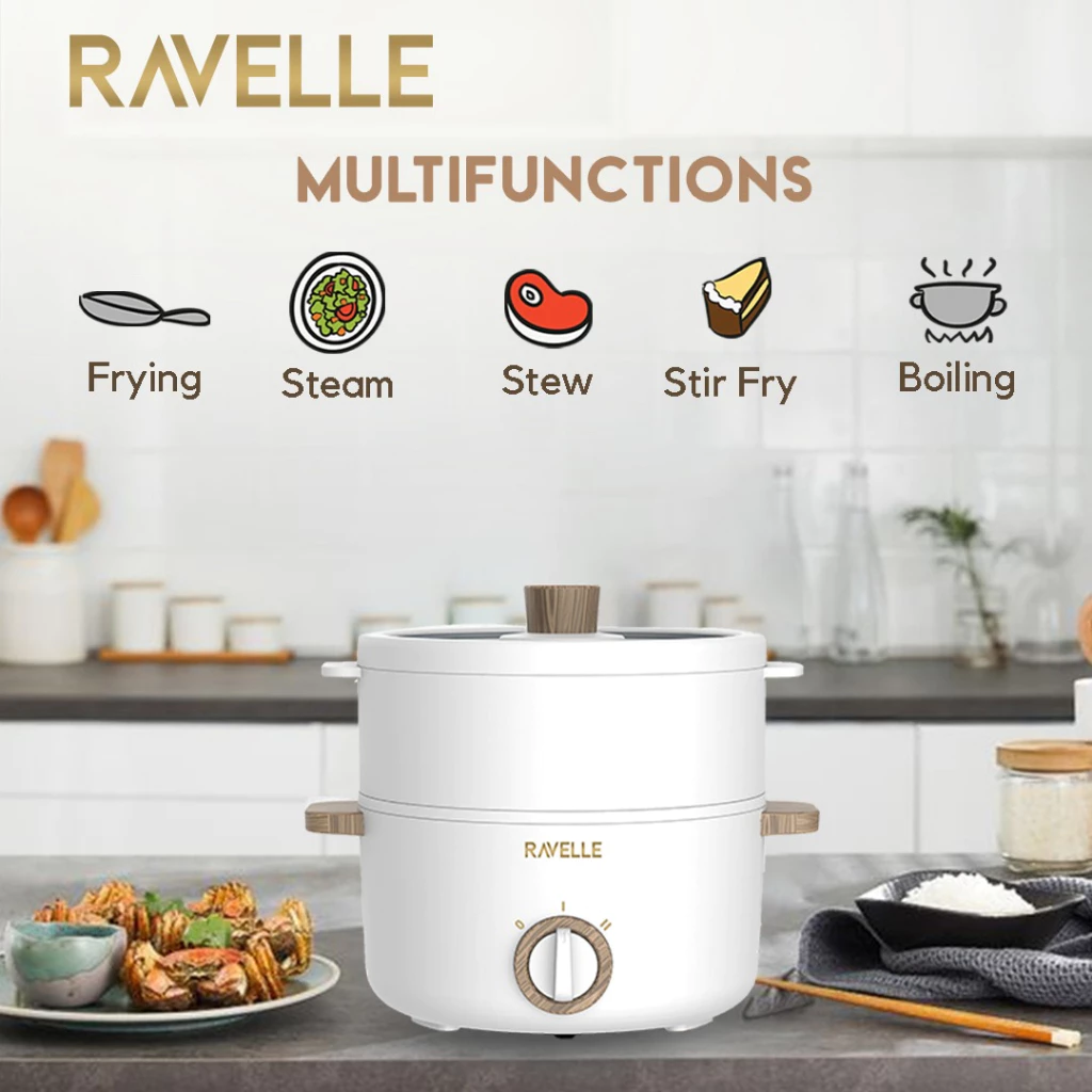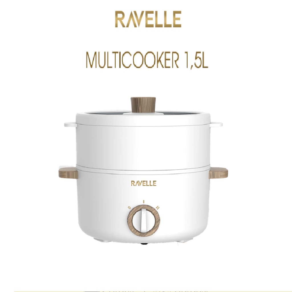 RAVELLE Multicooker 1.5 Liter - Panci Kukusan Listrik Multifungsi Low Watt