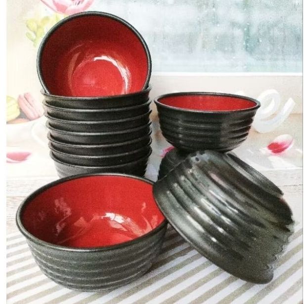 12pcs mangkuk bulat hitam polos ulir 15cm ramen terbaru kekinian termurah terlaris berkuwalitas