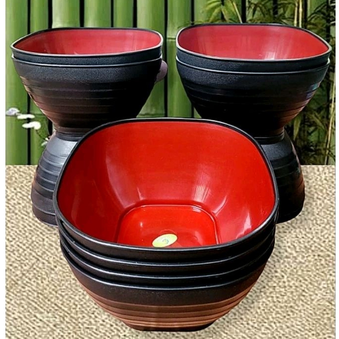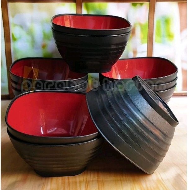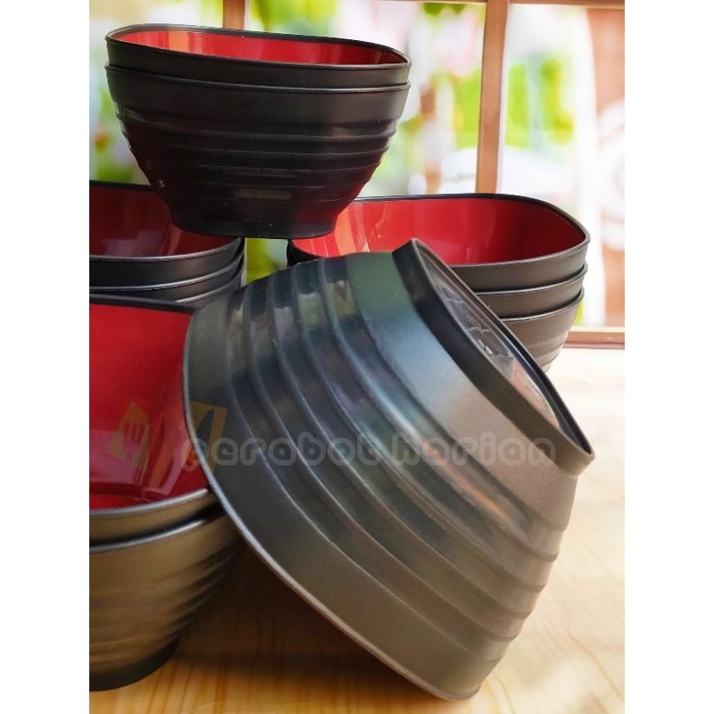 12pcs mangkuk petak hitam polos ulir ramen 16,5cm terbaru kekinian termurah terlaris berkuwalitas
