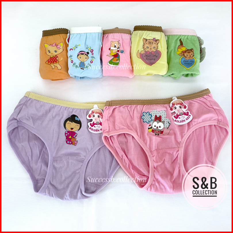 6 12 Pcs Cd Celana Dalam Anak Perempuan Golden Nick 061 Bahan Katun Lembut Premium Warna Soft Cantik Motif Gambar Lucu L