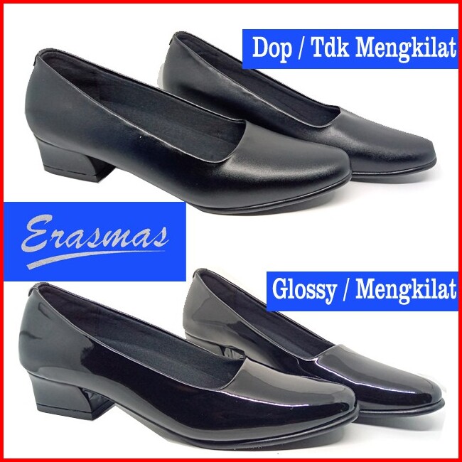 Sepatu Pdh Polwan Pdh Kowad 02a Erasmas Hak 3 Cm Hitam Persit Bhayangkari Formal Kerja Kantor Pns