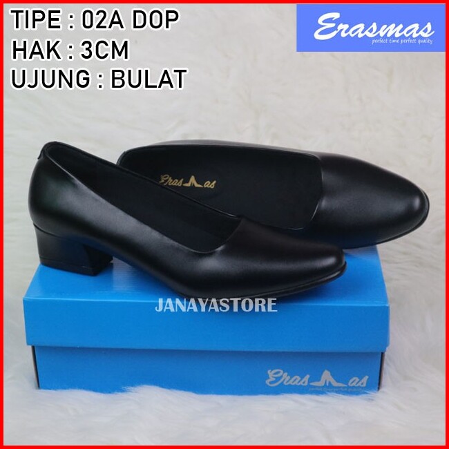 Sepatu Pdh Kantor Bulat 02a Erasmas Persit Bhayangkari Polwan Pns Hak 3cm