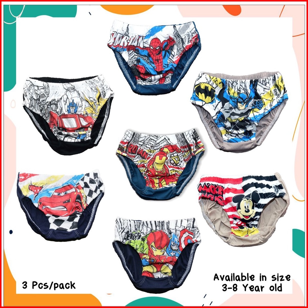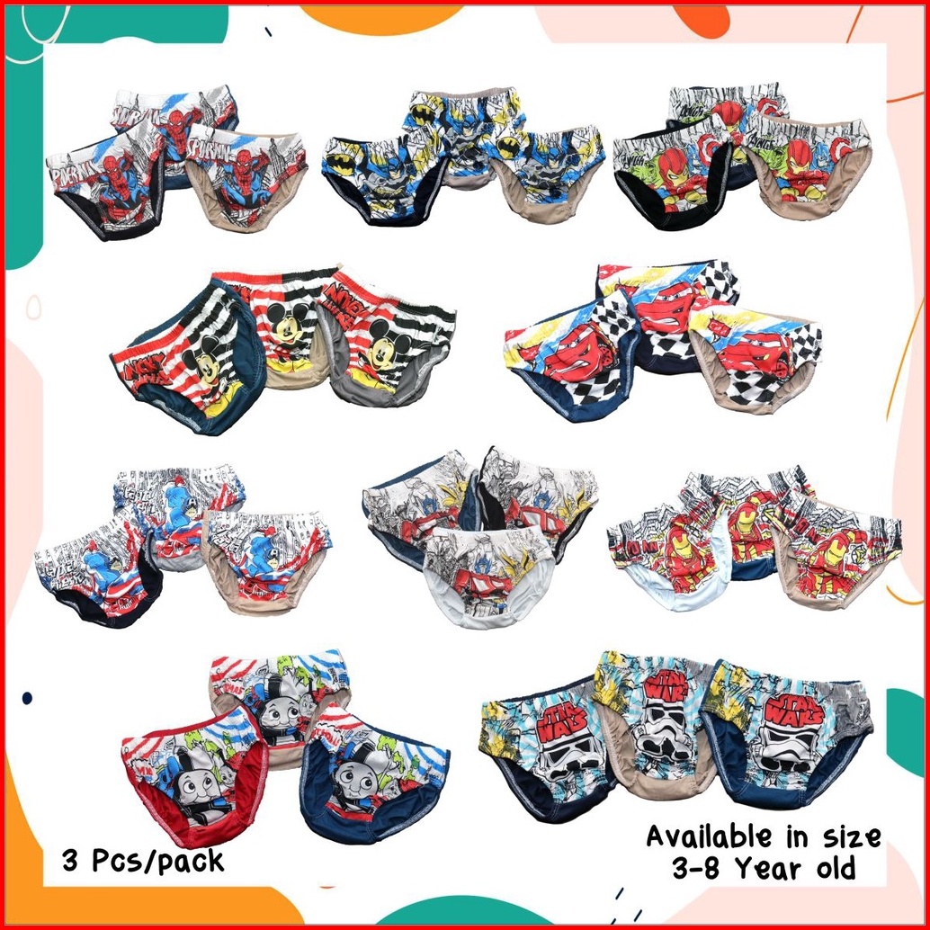 Celana Dalam Anak Laki Laki 3 - 8 Tahun Isi 3 Pcs Cd Kolor Sempak Cowo Motif Karakter - Onet Kids