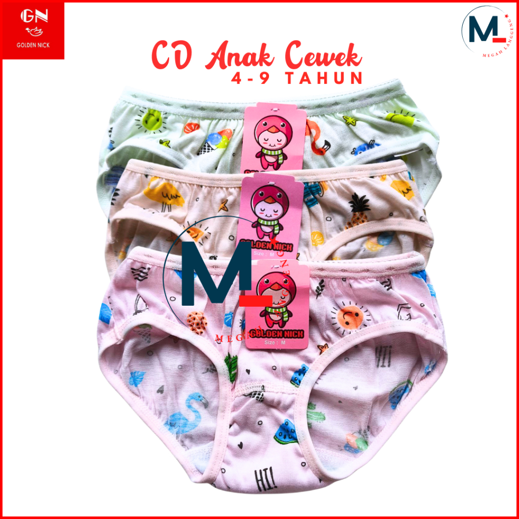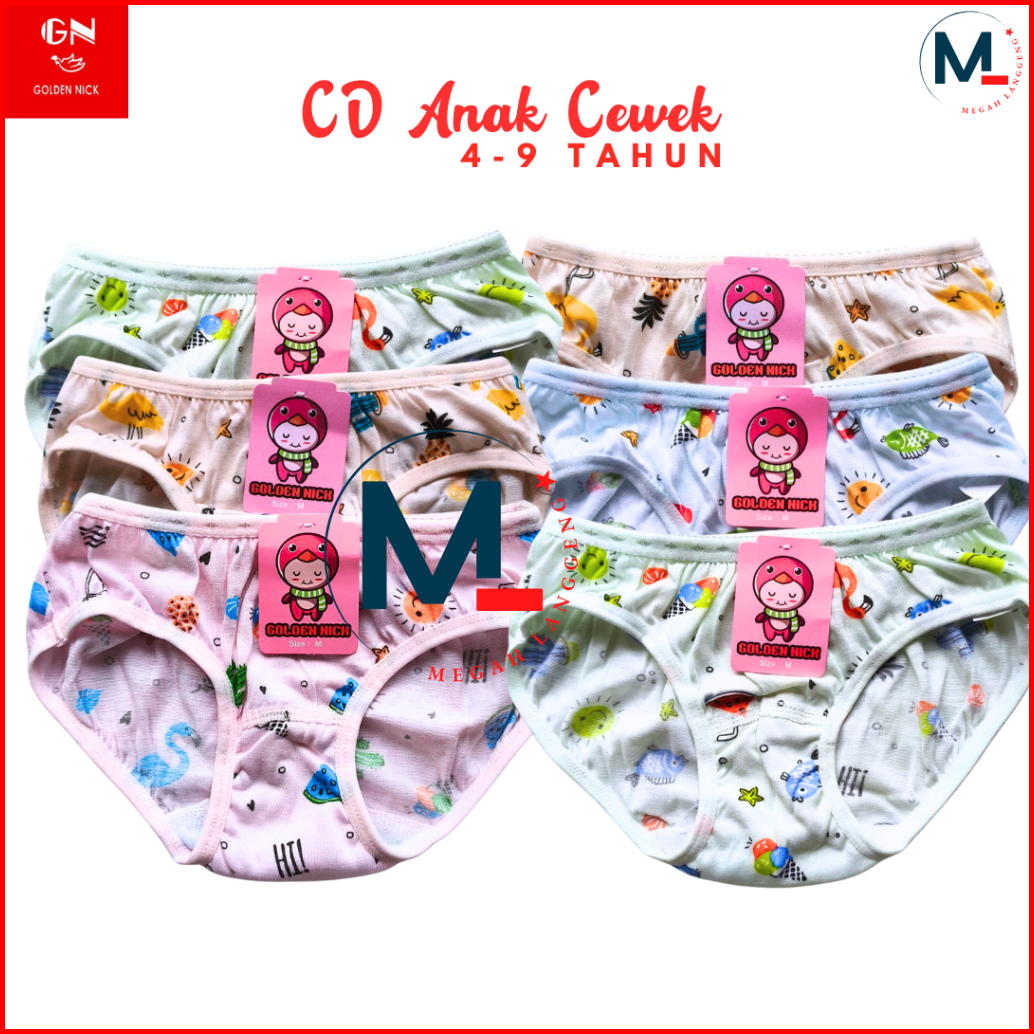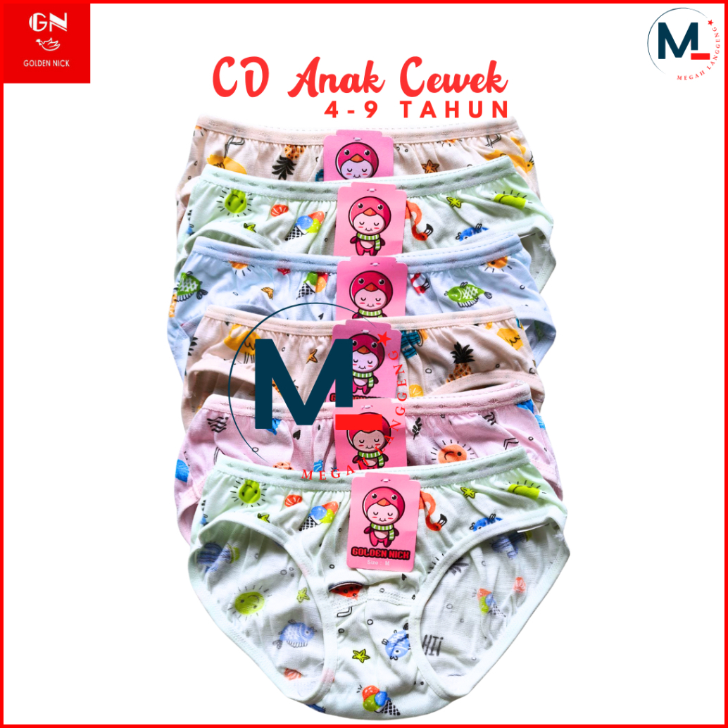 6 Pcs Celana Dalam Anak Perempuan Golden Nick 1187 Cd Pakaian Dalam Wanita - Cd Anak Perempuan Golden Nick Motif Bergamb