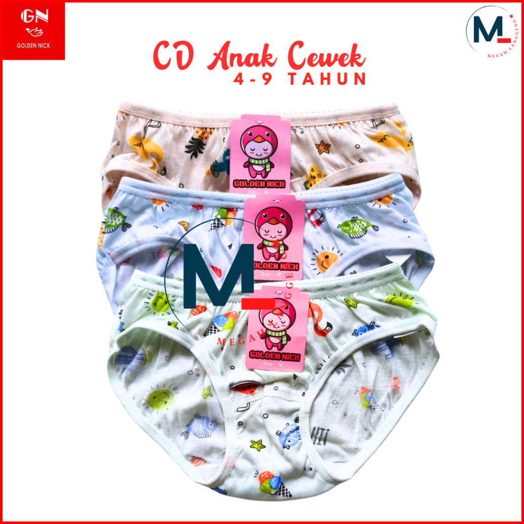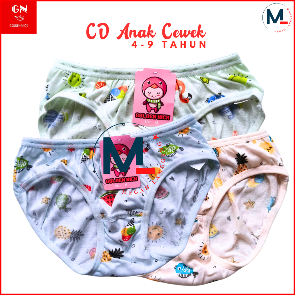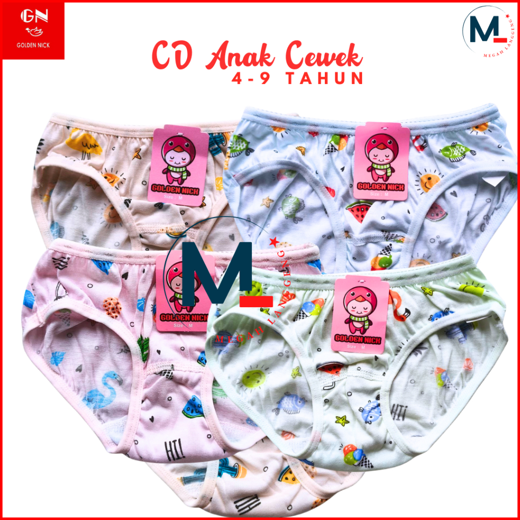 6 Pcs Celana Dalam Anak Perempuan Golden Nick 1187 Cd Pakaian Dalam Wanita - Cd Anak Perempuan Golden Nick Motif Bergamb