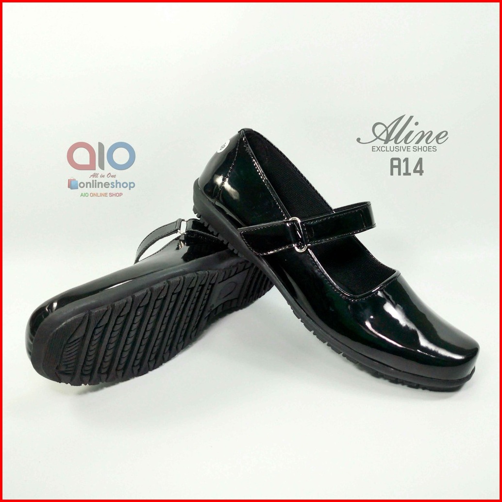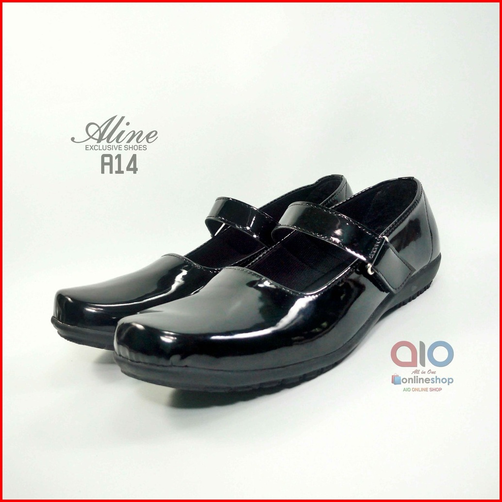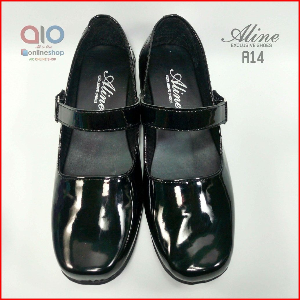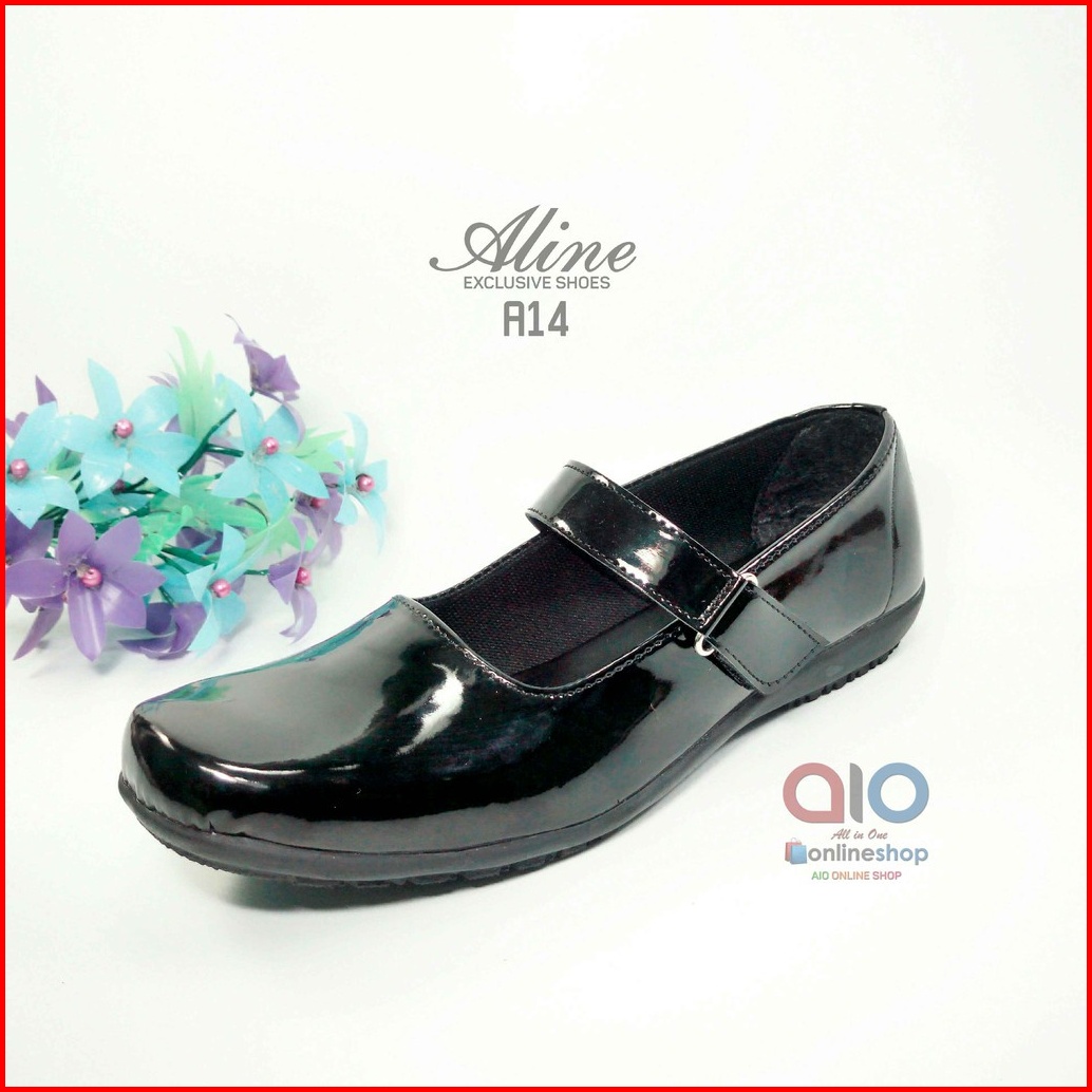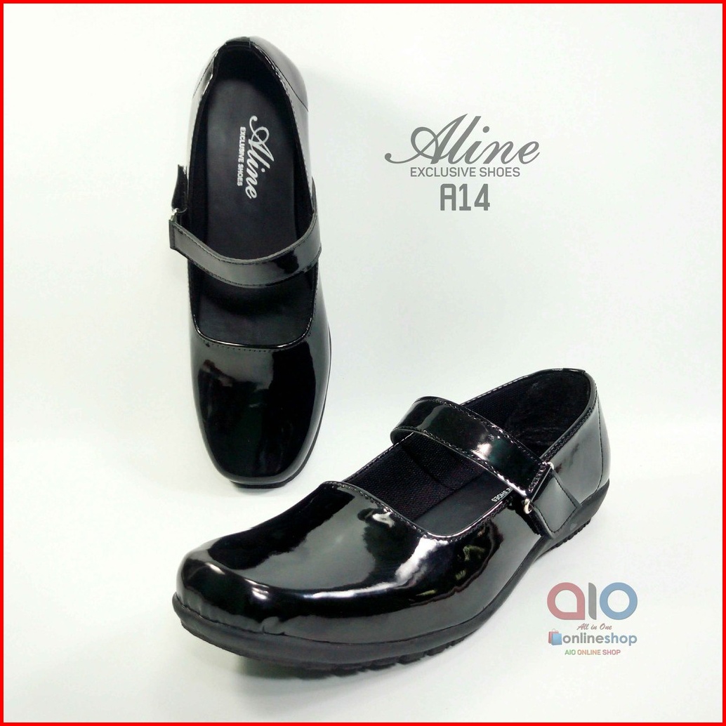 Sepatu Pantofel Paskibra Wanita Glossy Aline Hitam Kilap Hak 2cm Paskibraka Paskib A14