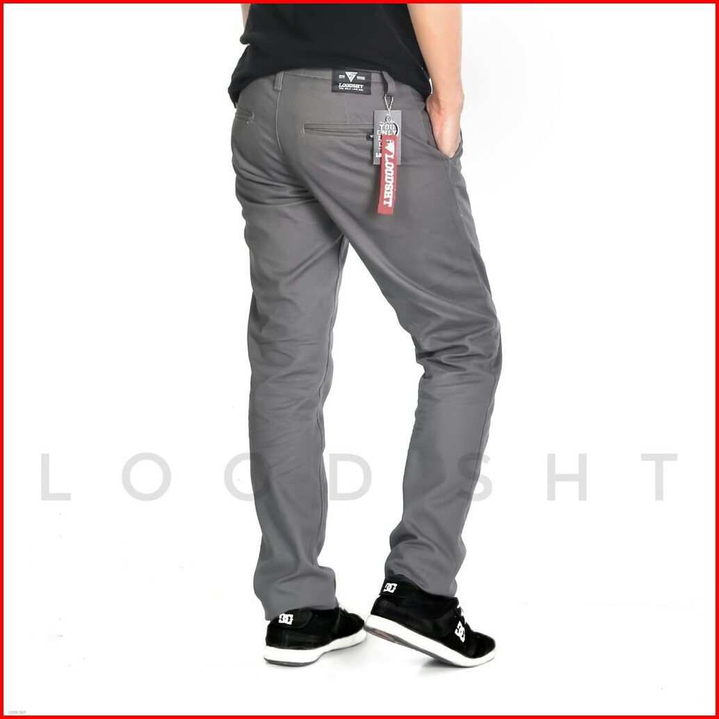 Celana Chino Panjang Pria Abu Tua Loodsht Original Bahan Twill Premium Nyaman Kerja Casual