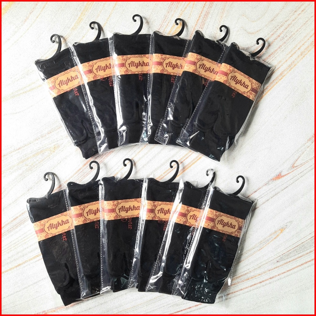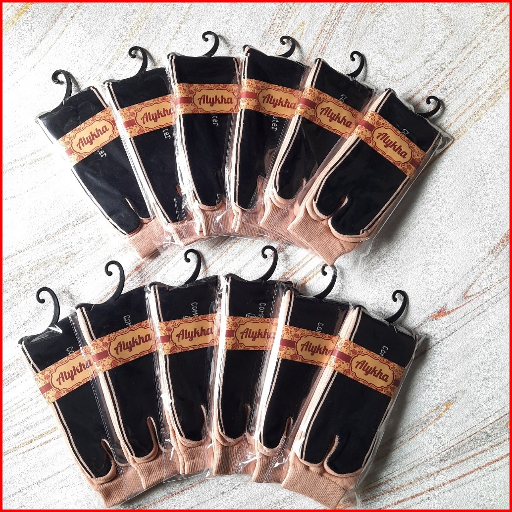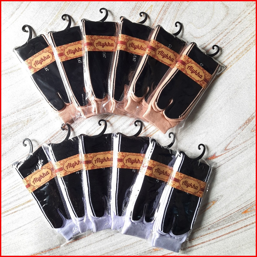 1 Lusin Kaos Kaki Jempol Polos Muslimah Krem Telapak Hitam Hitam Polos Putih Polos Bahan Nilon Ukuran L Sebetis Dewasa