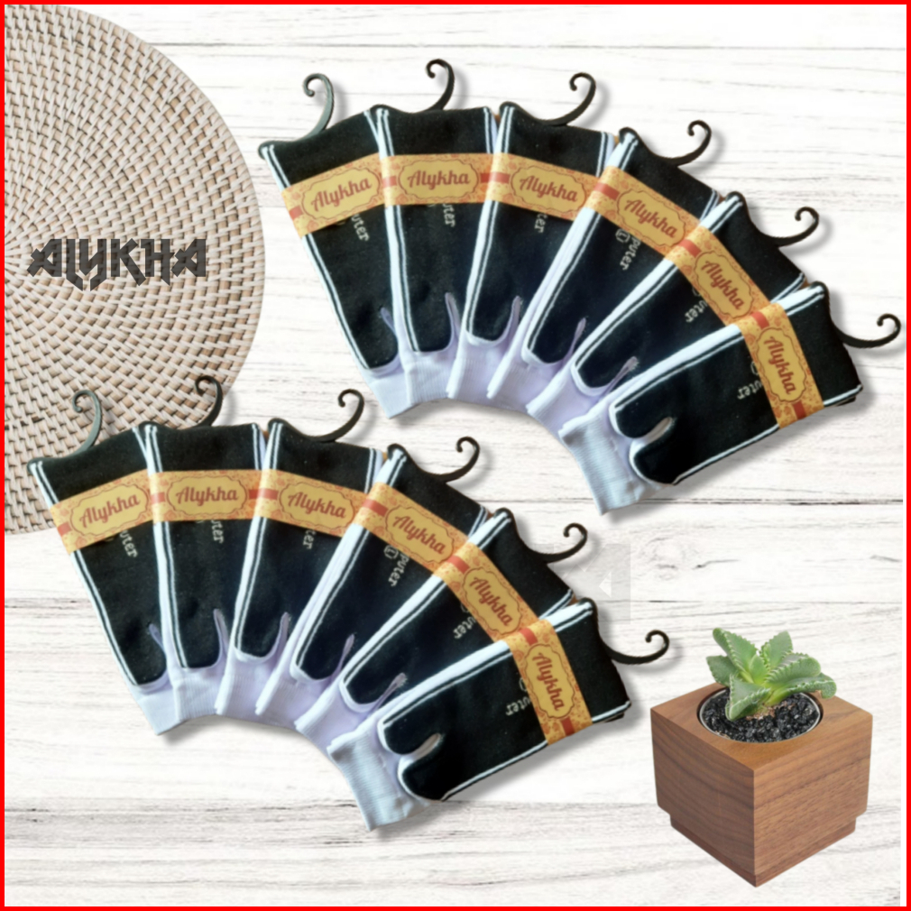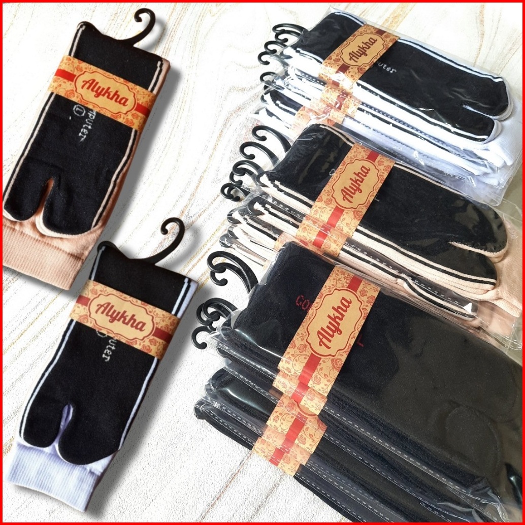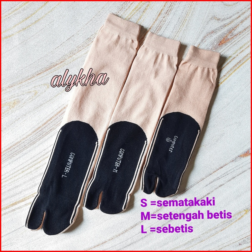 1 Lusin Kaos Kaki Jempol Polos Muslimah Krem Telapak Hitam Hitam Polos Putih Polos Bahan Nilon Ukuran L Sebetis Dewasa