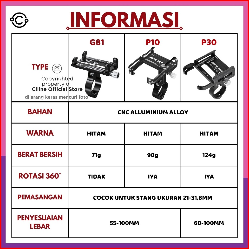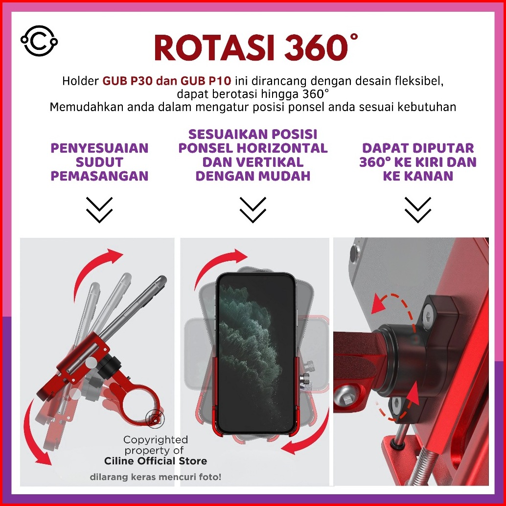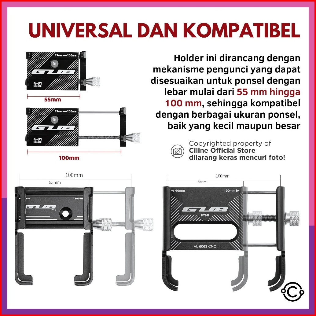 Gub Holder Phone Original Holder Hp Motor Dudukan Ponsel Aluminium Aloy Holder Handphone Motor