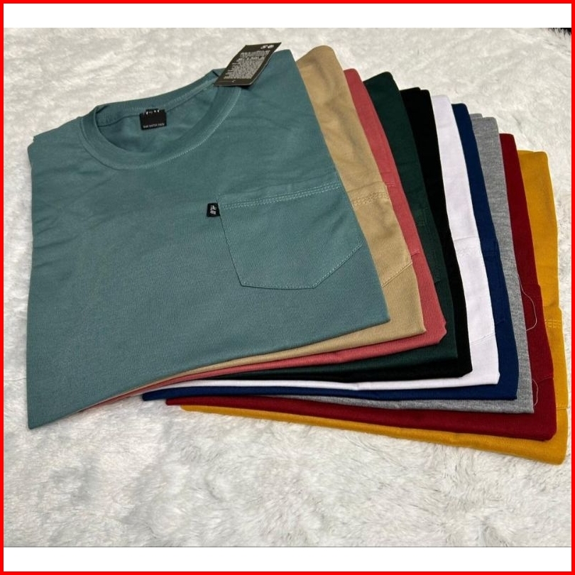 Paket 100 Ribu Dapat 4 Pcs Kaos Polos Pria Wanita Baju Distro Keren Pocket Saku Lengan Pendek Kekinian