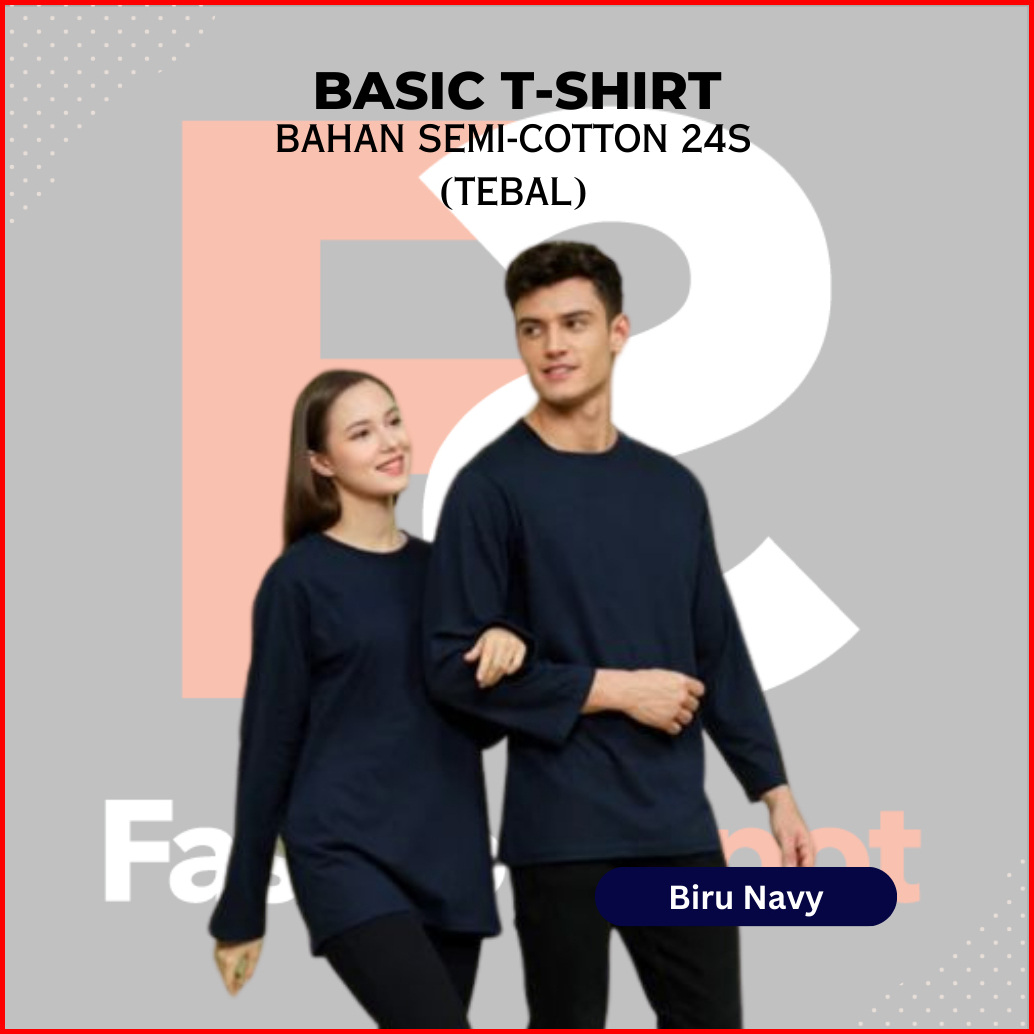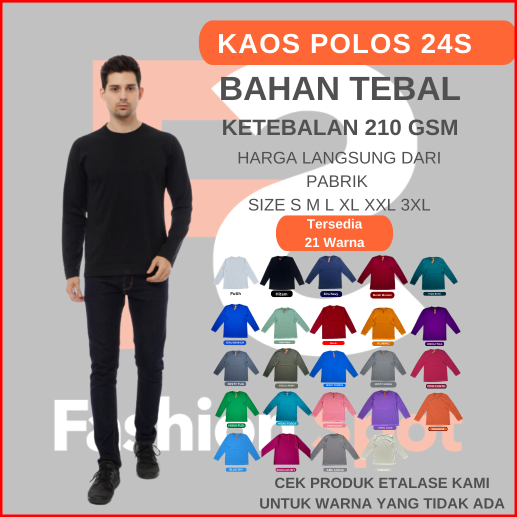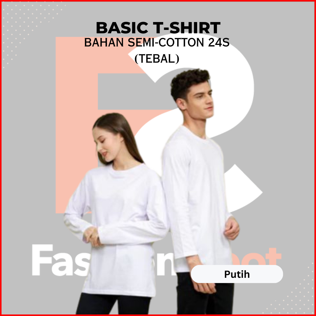 Tebal Kaos Polos Lengan Panjang Semi-cotton 24s Premium Reguler Fit Pria Wanita Dewasa Round Neck