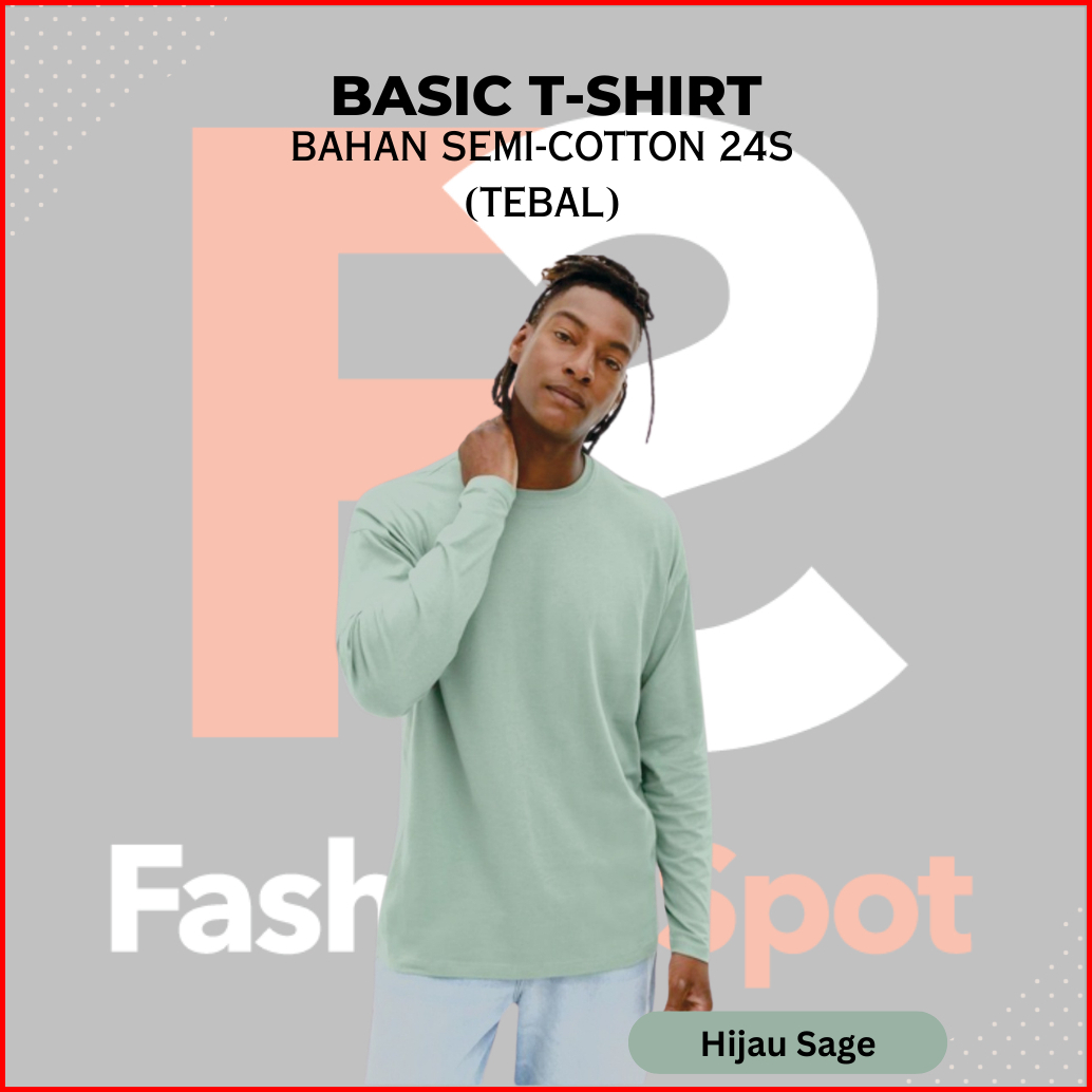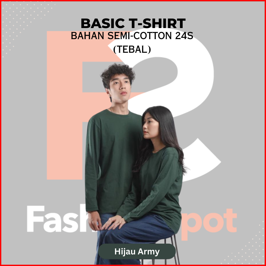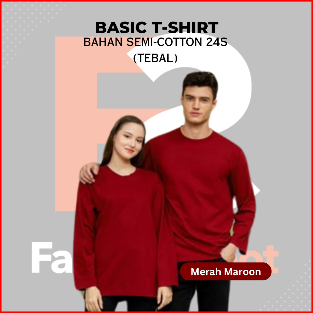 Tebal Kaos Polos Lengan Panjang Semi-cotton 24s Premium Reguler Fit Pria Wanita Dewasa Round Neck