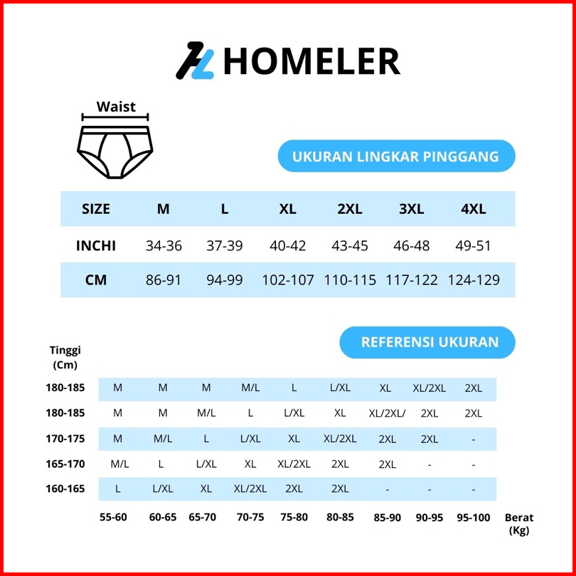 Homeler Celana Dalam Pria 1 Box Isi 3 Pcs Hl-106