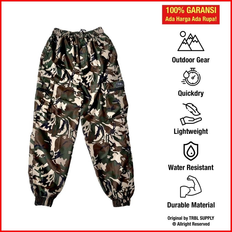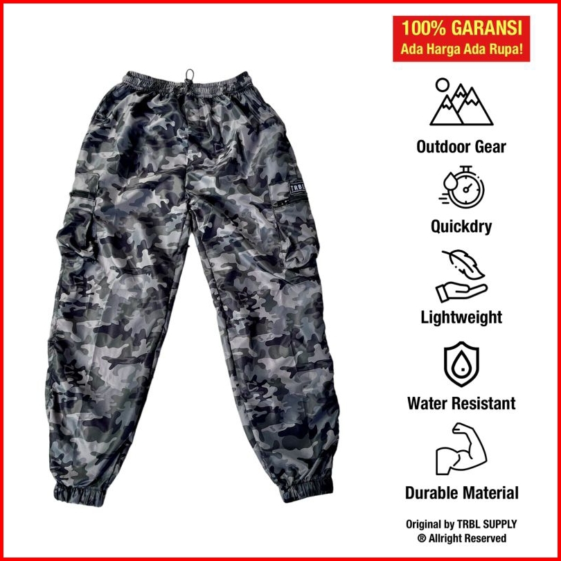 Trbl Celana Cargo Panjang Pria Jack String Jogger Cargo Zip Celana Gunung Water Resistant Anti Air