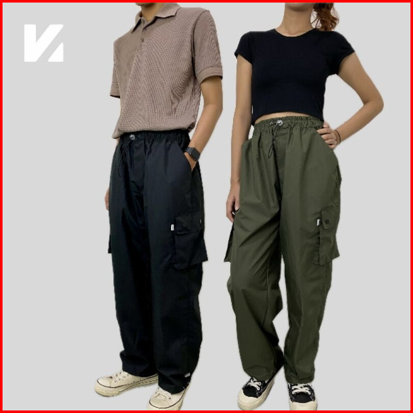 Vno Id Celana Cargo Panjang Tactical Loose Parasut - Celana Cargo Trackpants - Army Hitam