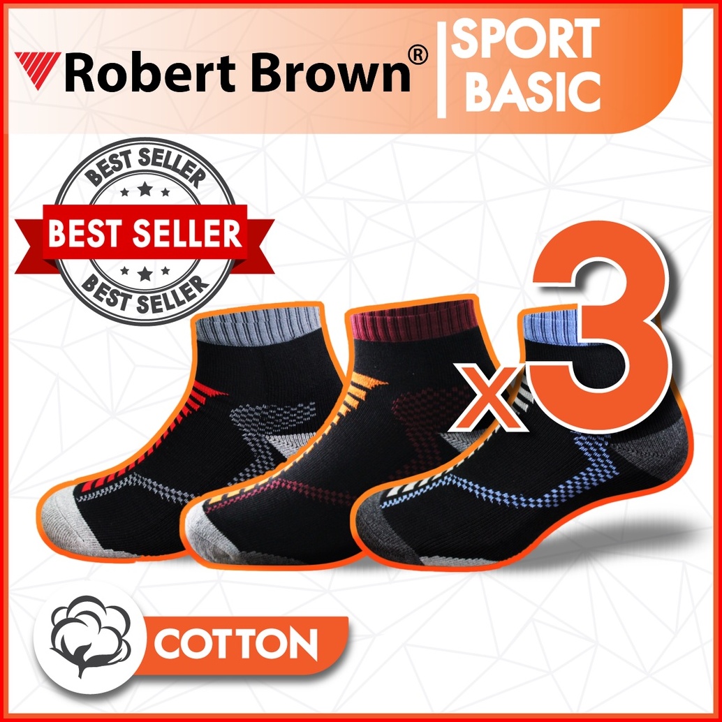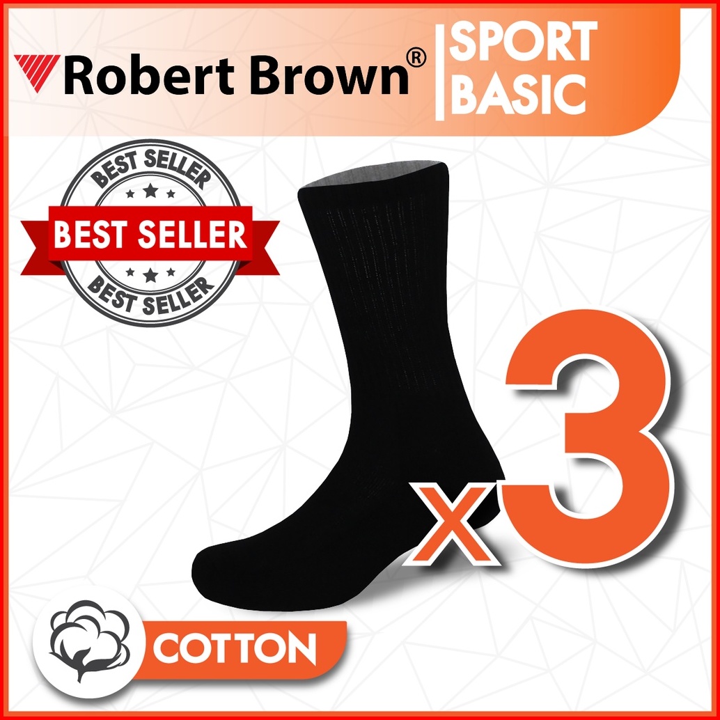 Kaos Kaki Olahraga Robert Brown Pria Tebal Polos Motif Katun Premium 3 Pcs