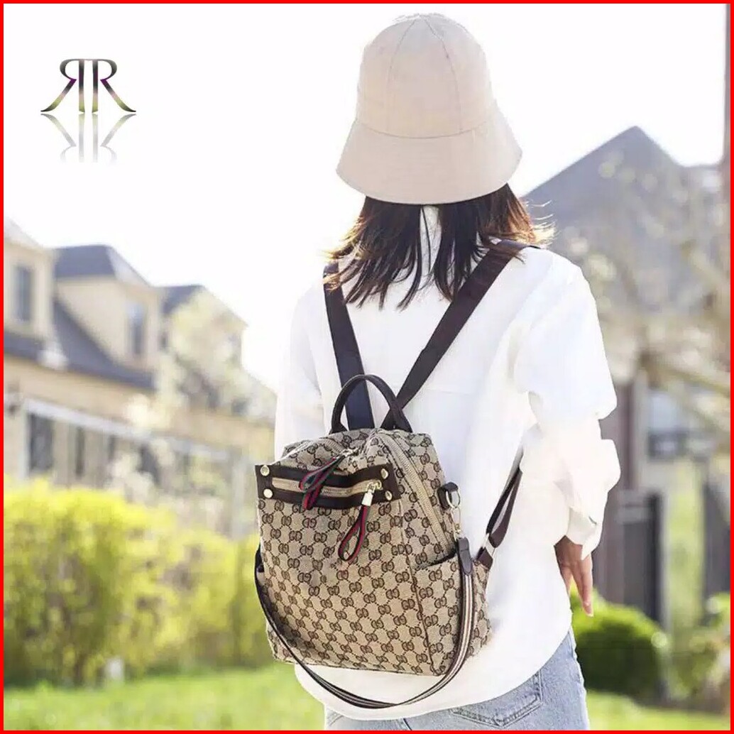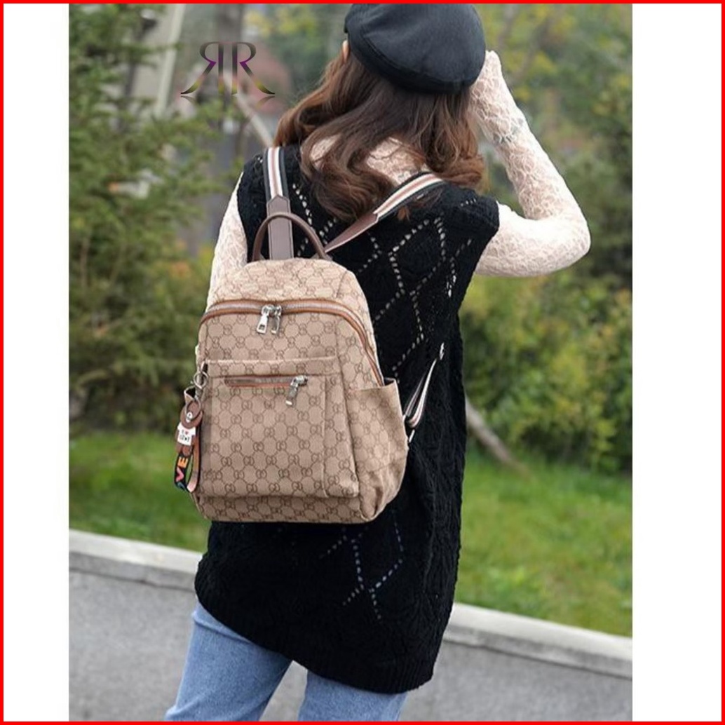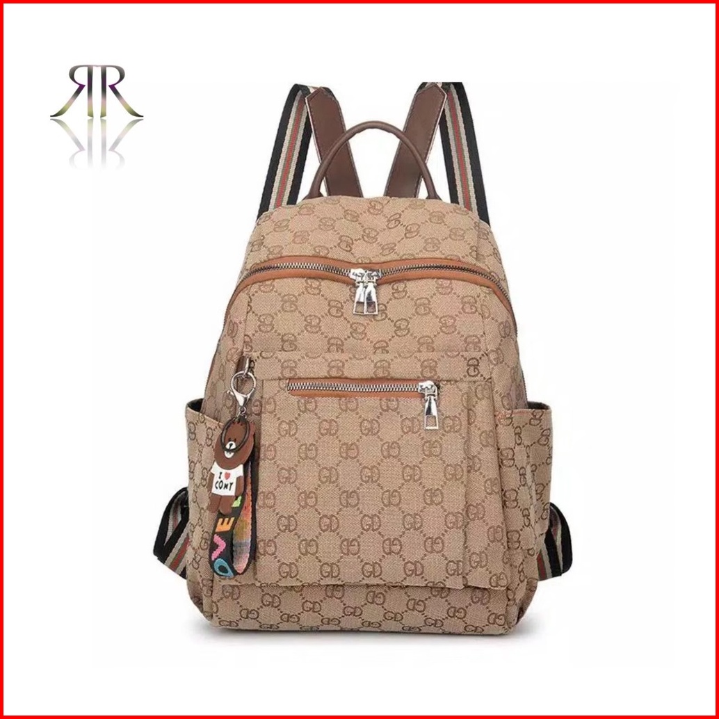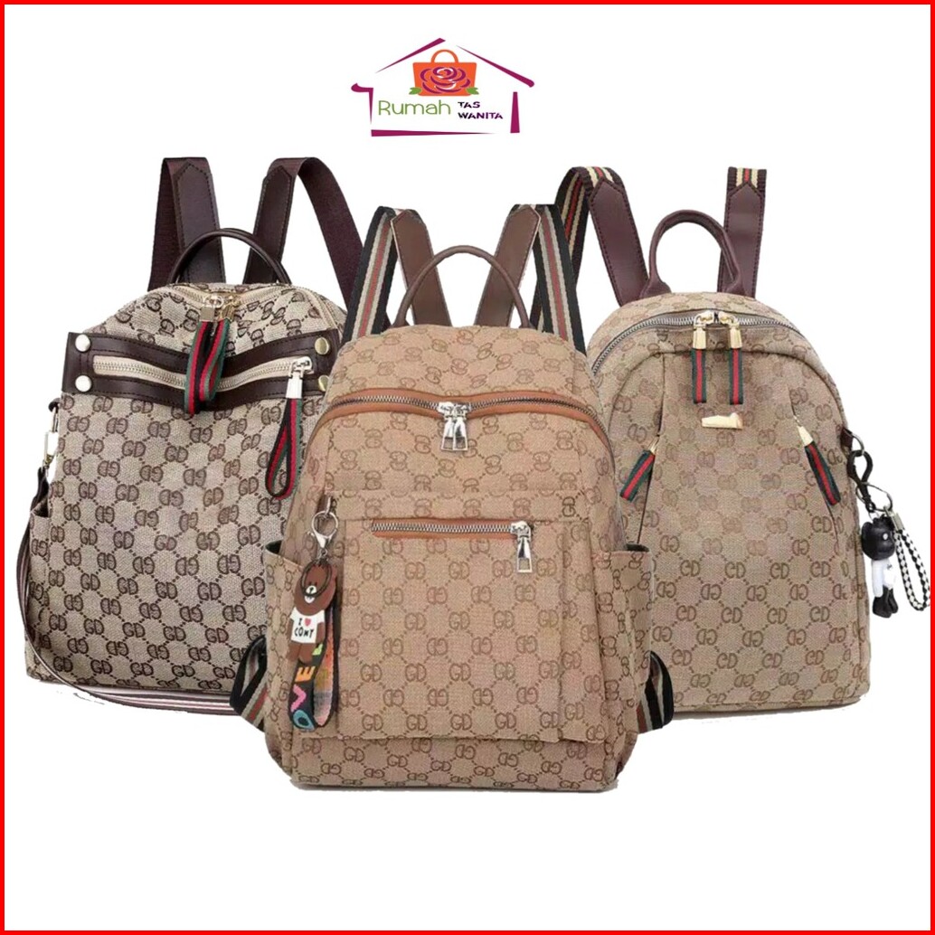 Tas Wanita Tas Ransel Wanita Kanvas Mocca Motif Huruf Free Gantungan Lucu Backpack Multifungsi