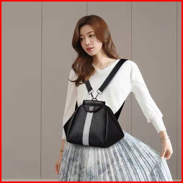 Bj32026 - Black - Tas Ransel Punggung Slempang Multifungsi Wanita Fashion Import Modis Elegan Termurah Terlaris Terbaru