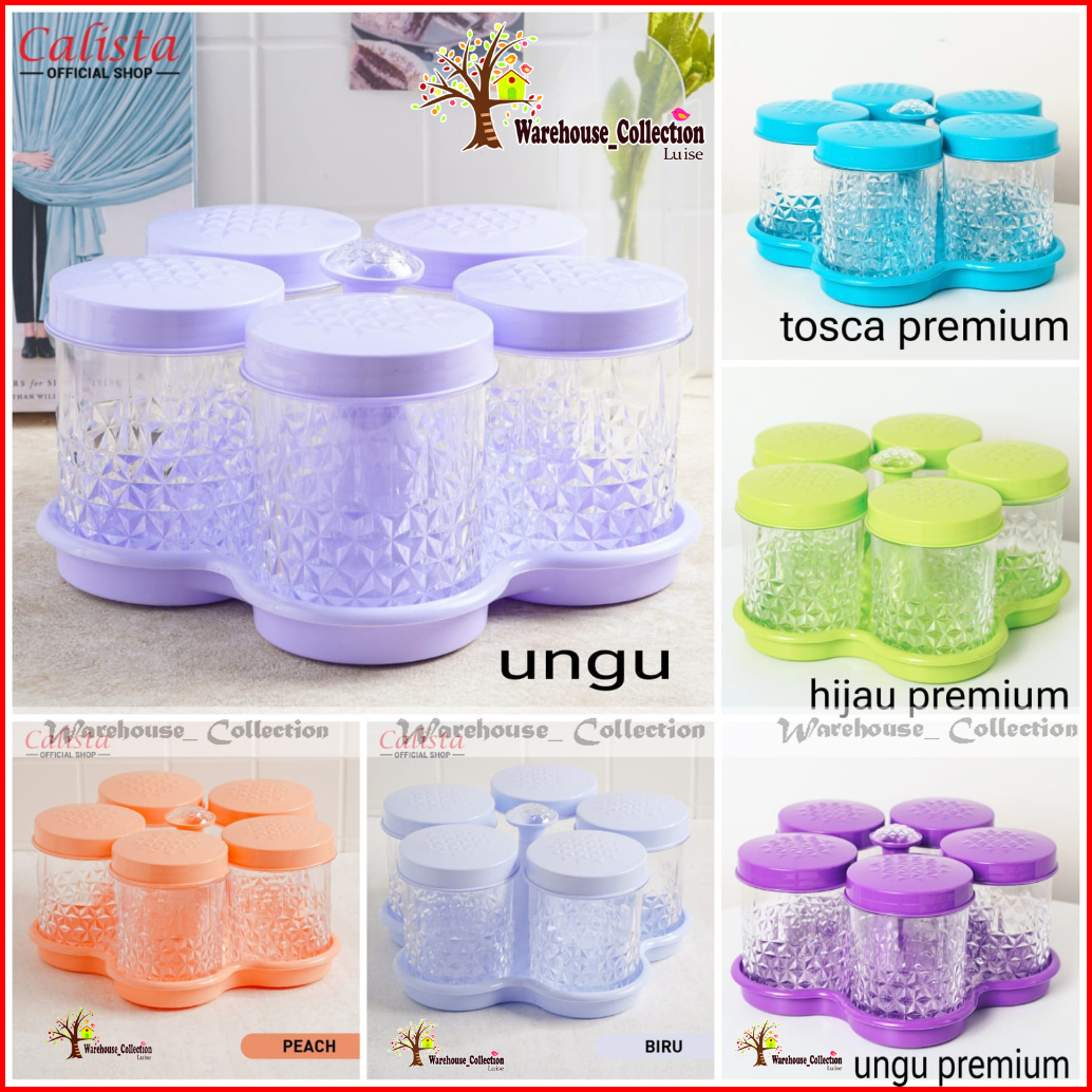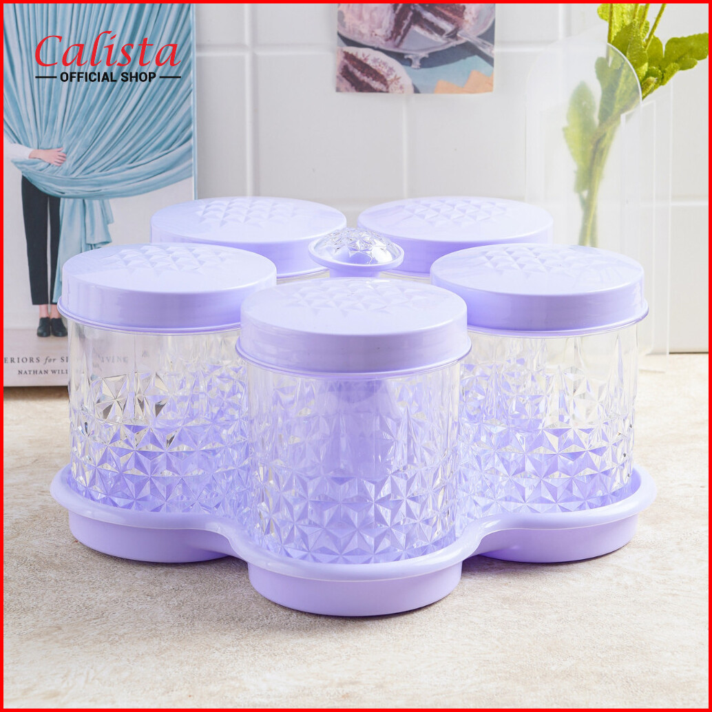Calista Set Toples Kristal 5 Daun 4 Daun Wadah Snack Tempat Makanan Toples Isi 4 5 Nampan