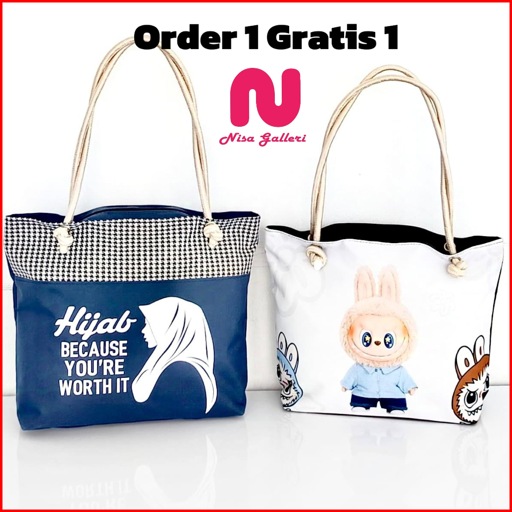 Nisa Galleri Tas Wanita Terbaru Tote Bag Tali Sumbu Tas Kuliah Tas Kerja Kekinian Tote Motif 2024
