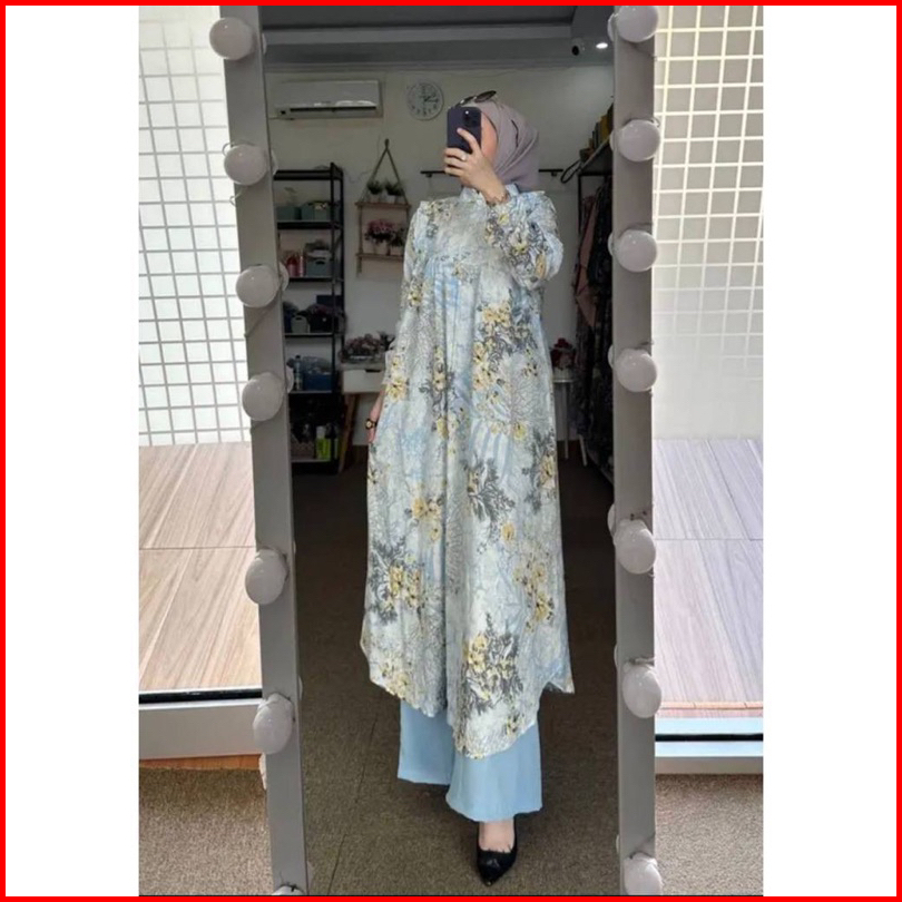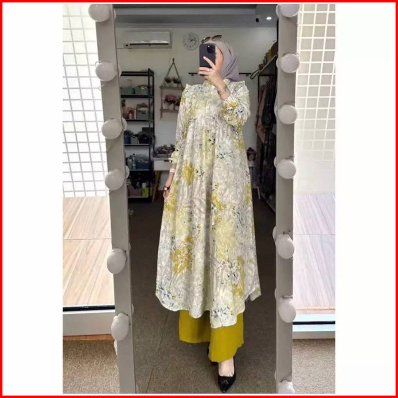 Setelan Long Tunik Wanita Busui Rayon Diamond Terbaru Kekinian Dea Long Tunik
