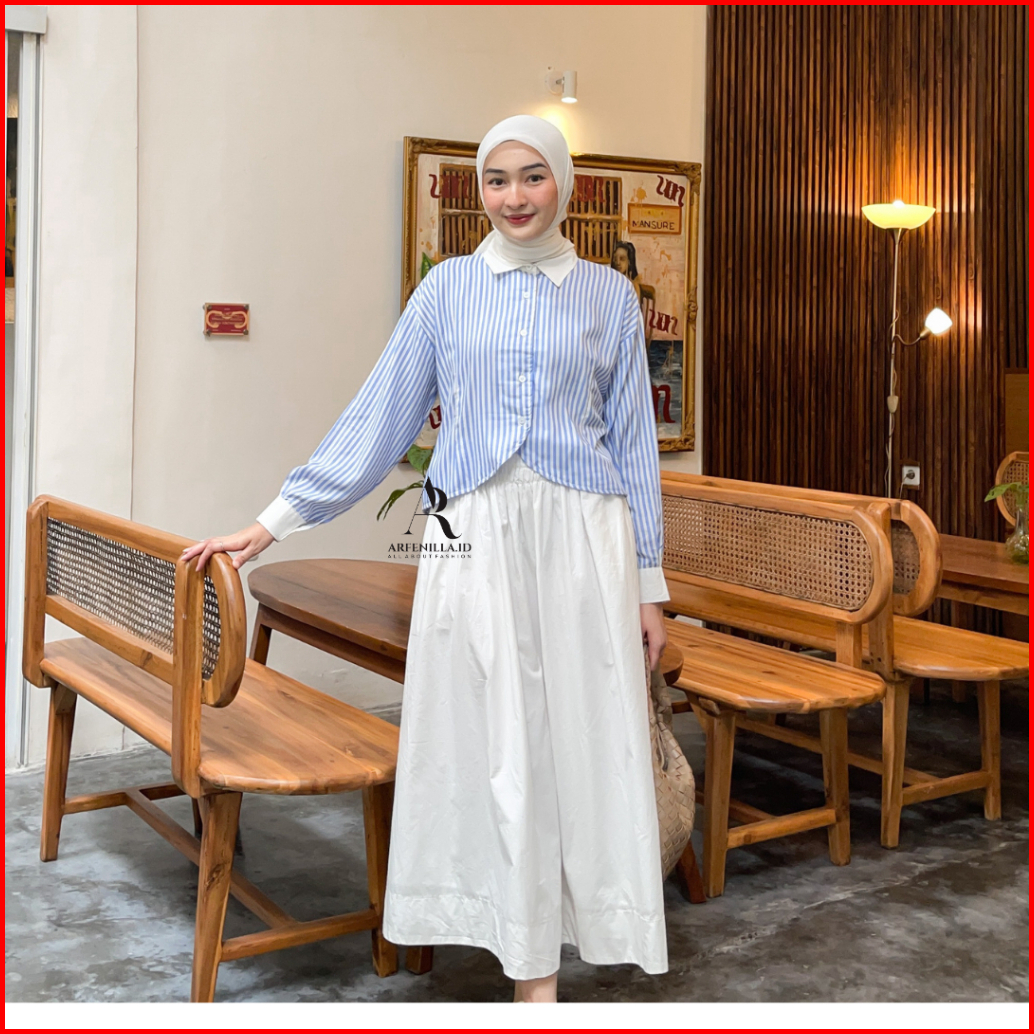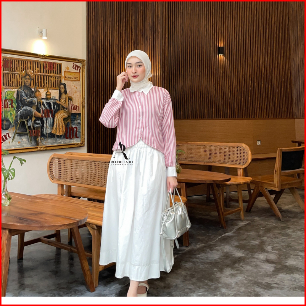 Jingga Shirt Motif Garis Lengan Panjang Rayon