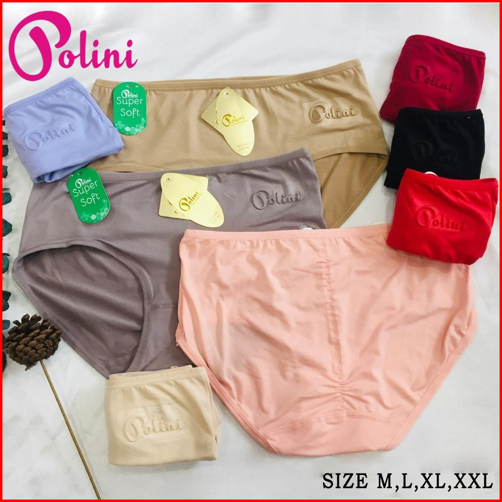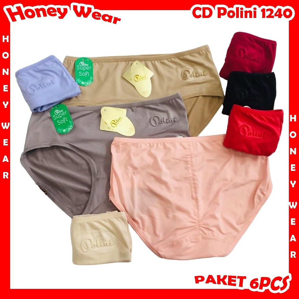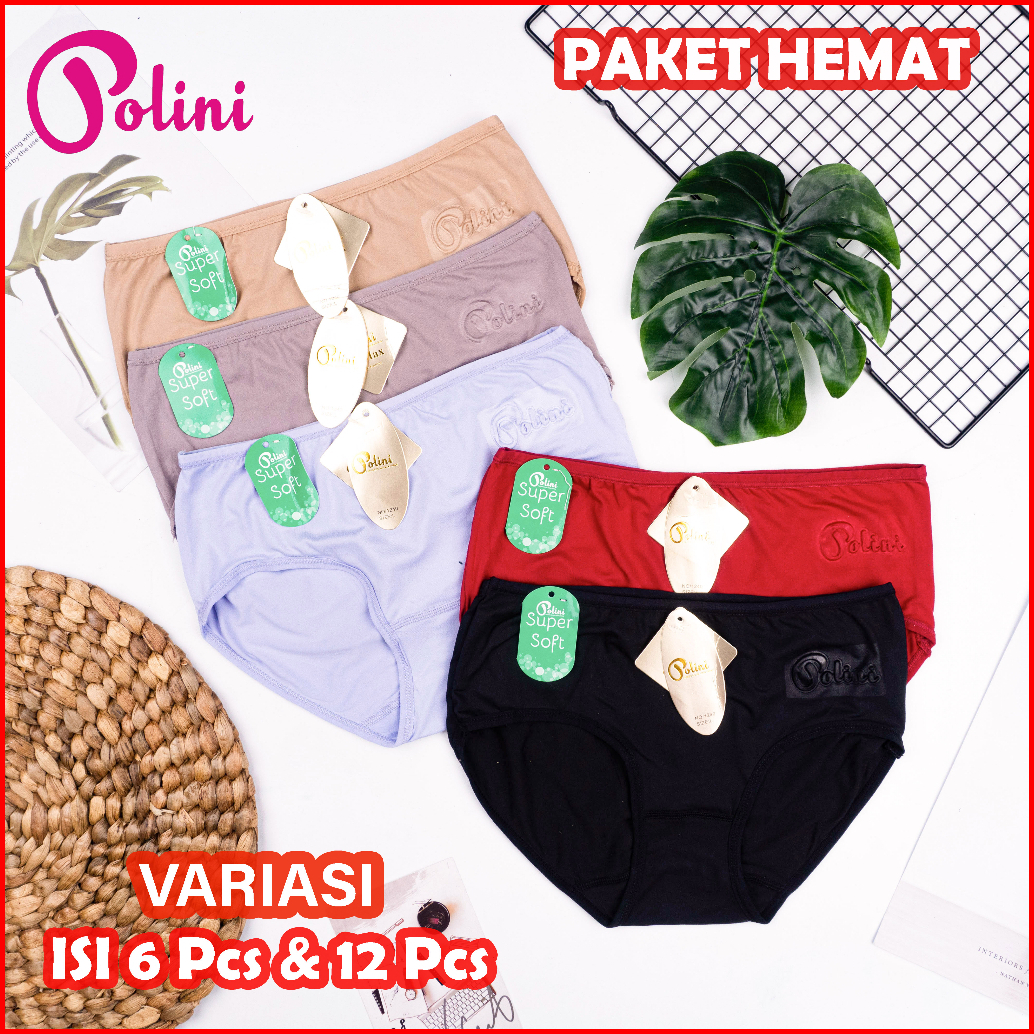 Hw - Promo Hemat 6pcs Celana Dalam Wanita Motif Polos Cd Mid Waist Polini 1240