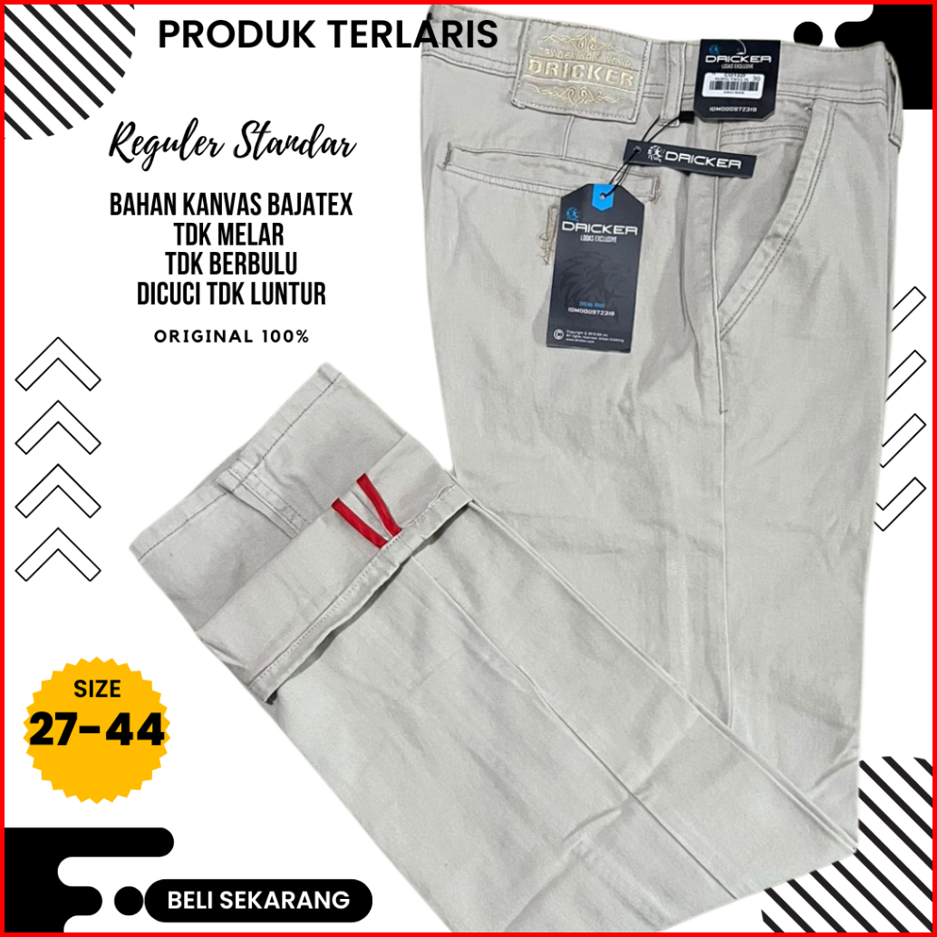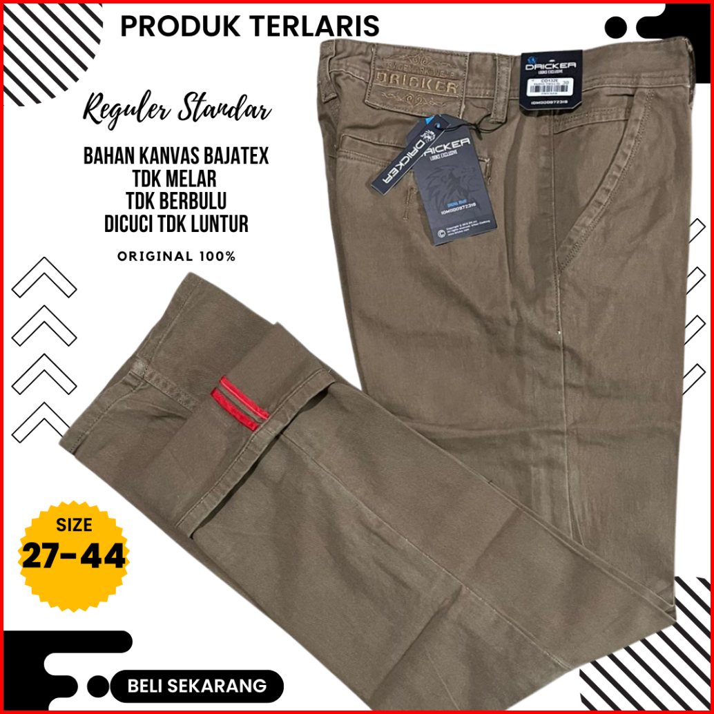 Celana Panjang Pria Chino Premium Original 100 Bahan Kanvas Tidak Melar Reguler Standar Fit 27-45
