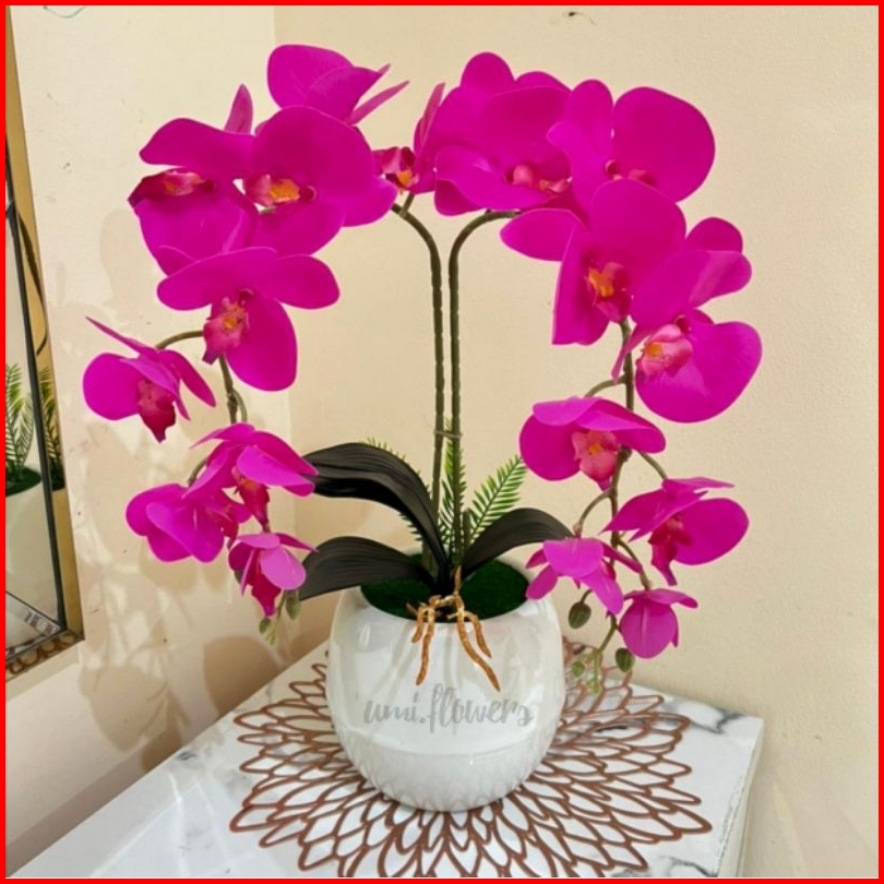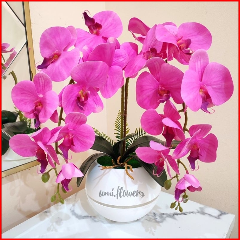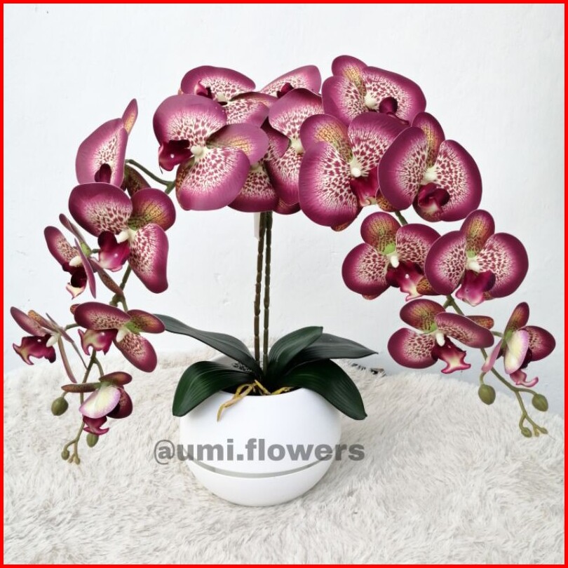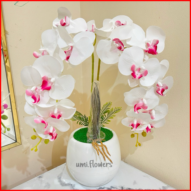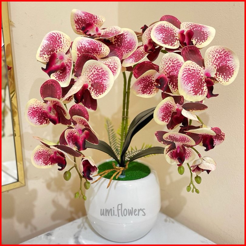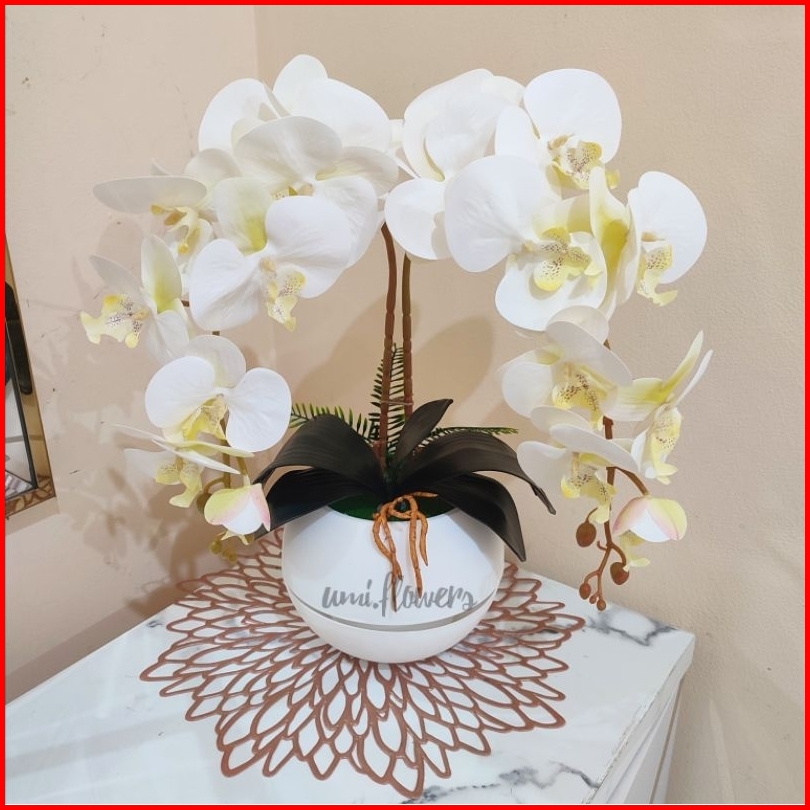Anggrek Latex 2 Tangkai Plus Pot Bola Motif Baru