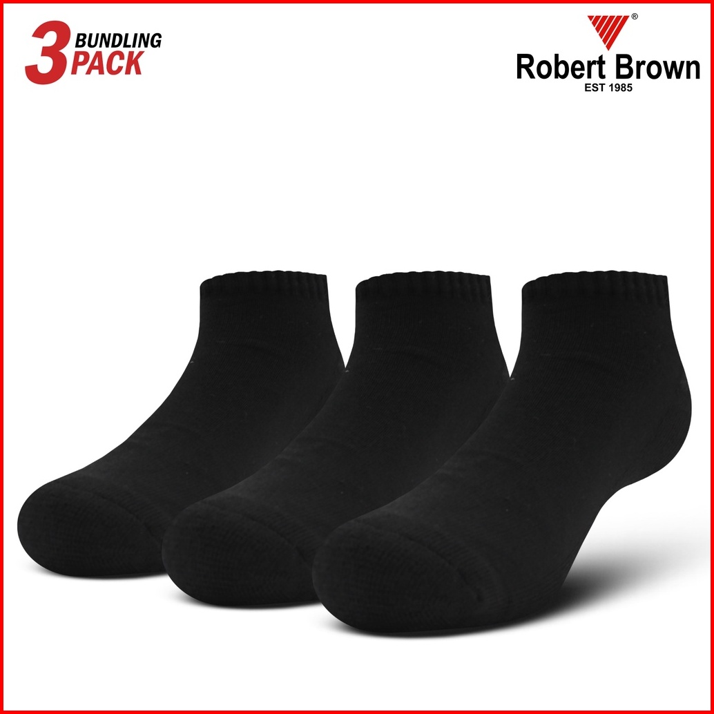 Kaos Kaki Sport Pria Robert Brown Katun Tebal 3 Pack 4238 Black