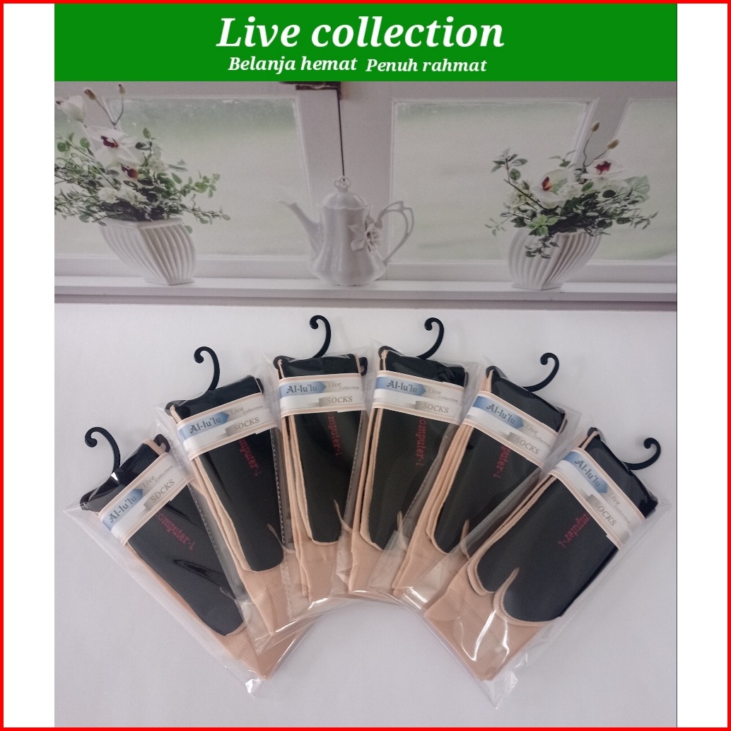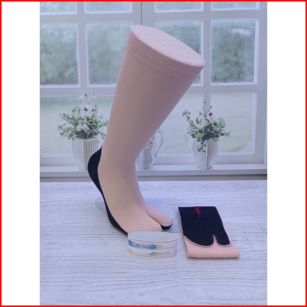 12 Pasang Kaos Kaki Jempol Muslimah Krem Telapak Hitam Nilon Kaos Kaki Collection Computerized