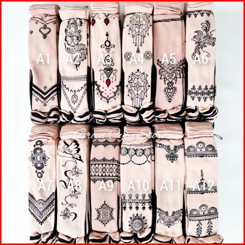 1 Lusin Kaos Kaki Jempol Nilon Muslimah Motif Hena Lusinan