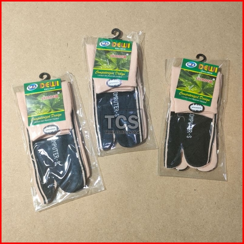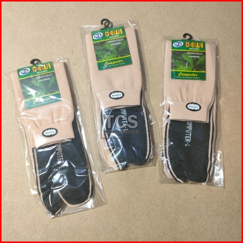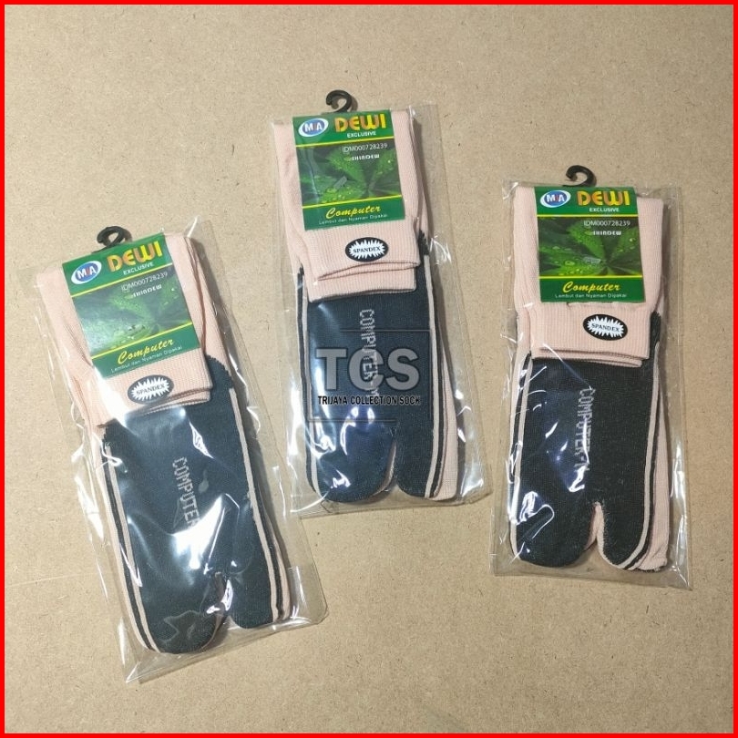 Grosir 1 Lusin Kaos Kaki Jempol Wanita Cream Tapak Hitam Dw Poliester