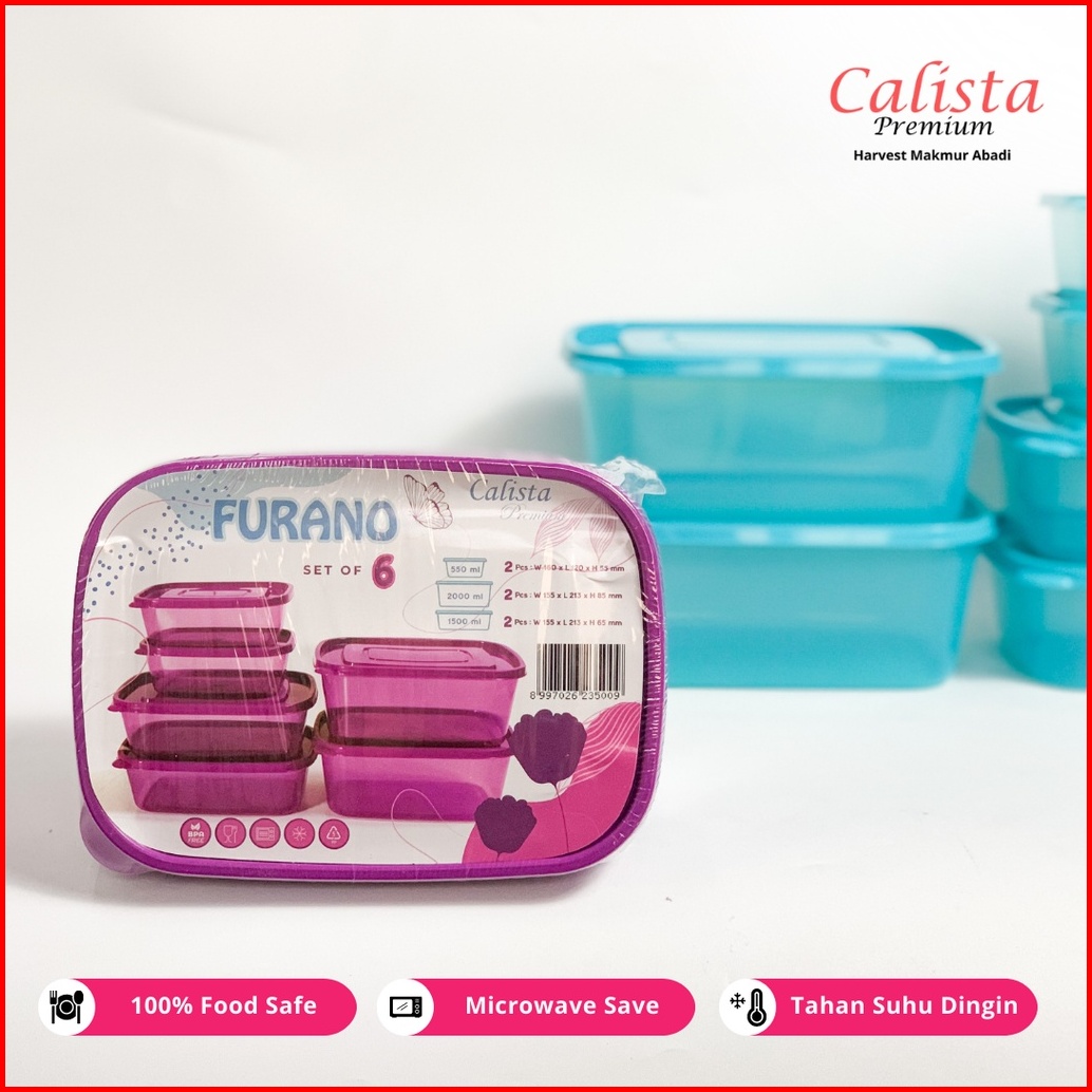Calista Food Kontainer Set Furano Isi 6 - Wadah Makanan Set Kedap Udara Toples Bening Sealware Set Bening Transparan Tem