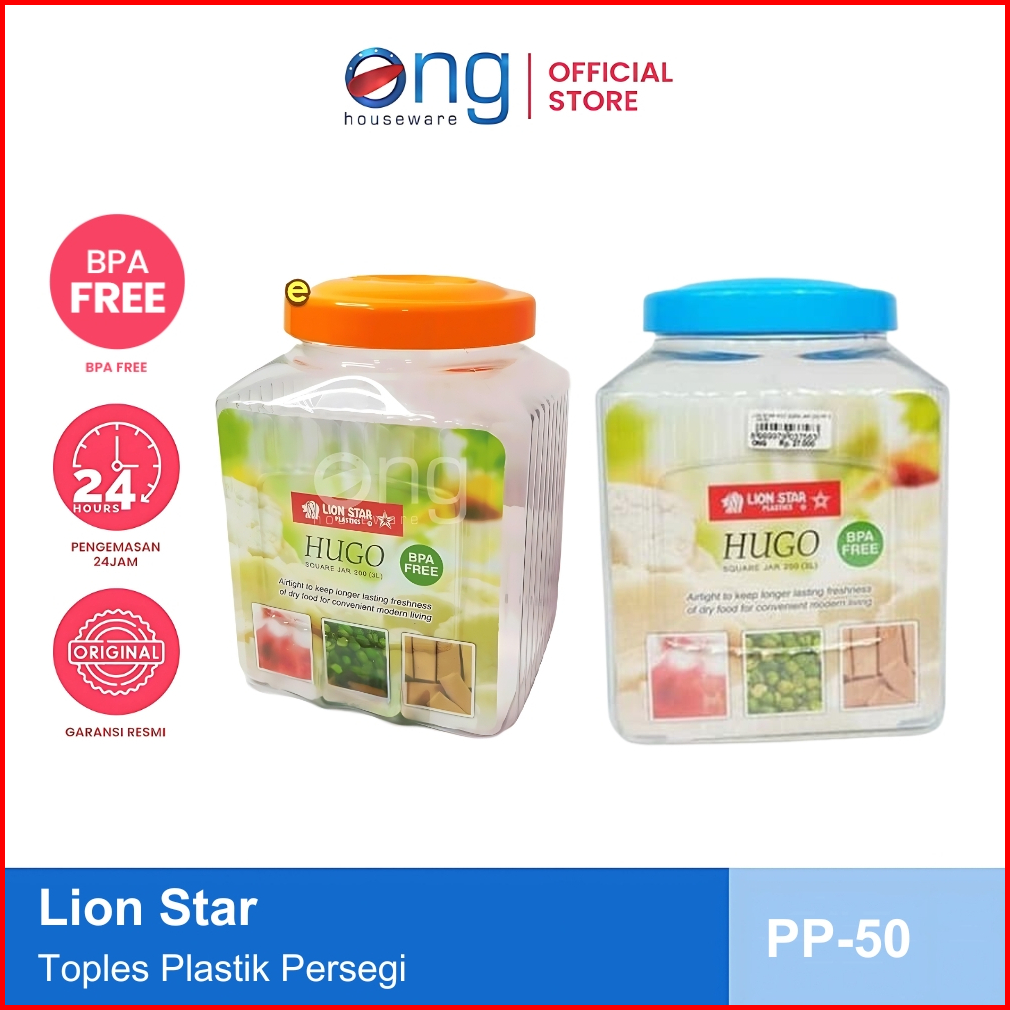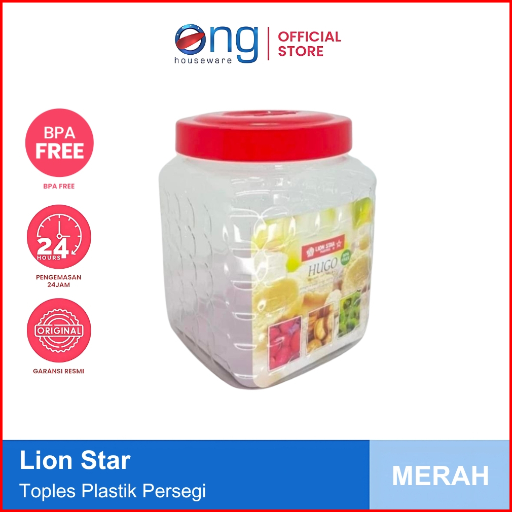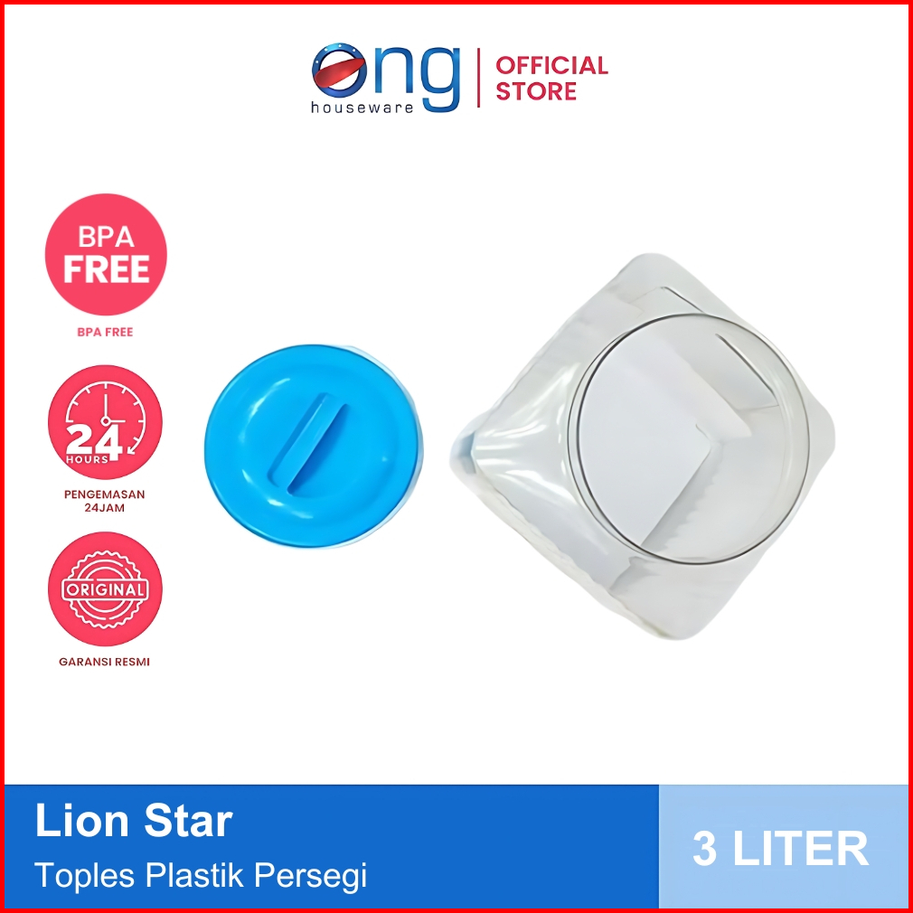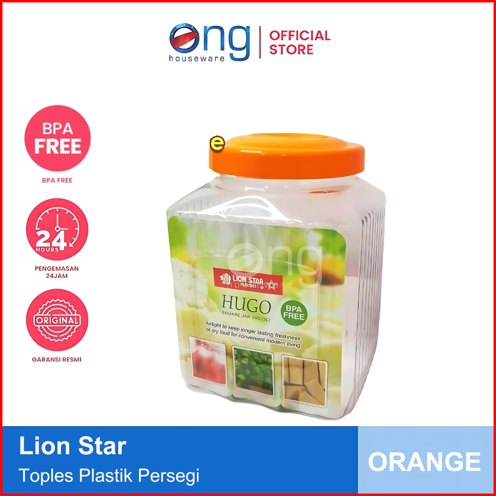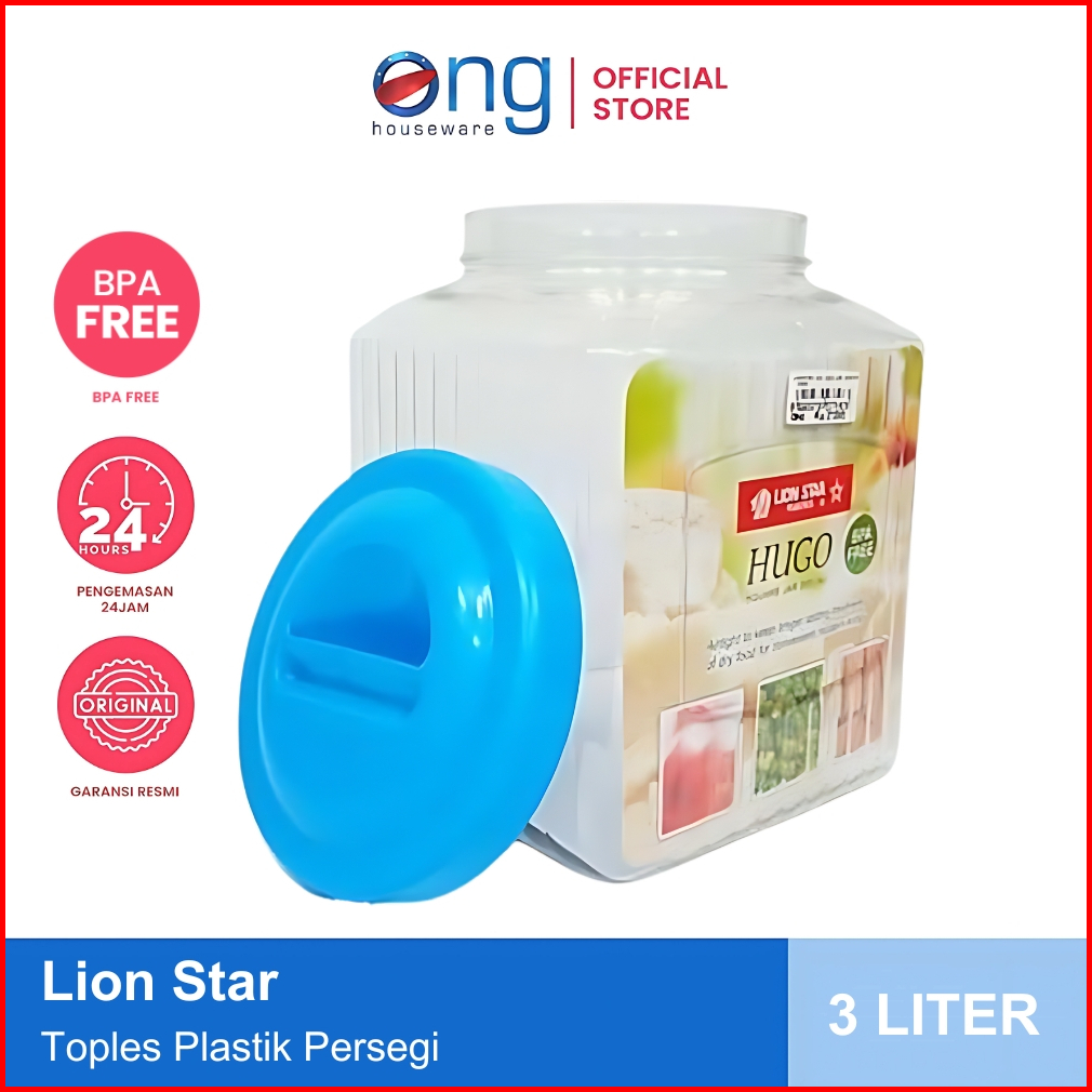 Ong Houseware - Toples Kedap Udara Plastik Square Persegi 3 Liter Hugo Lion Star Pp-50