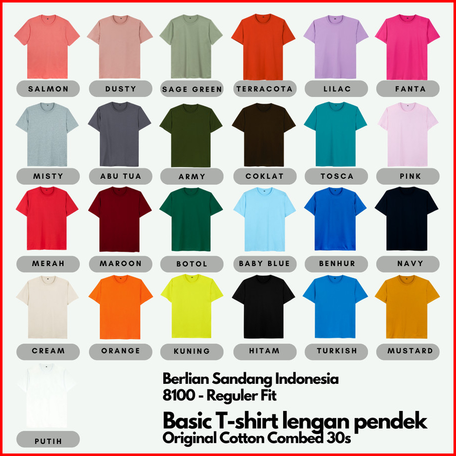 Kaos Polos Combed 30s Lengan Pendek Baju Kaos Oblong Pria