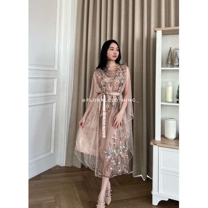 DRESS WANITA KOREA KONDANGAN MODERN BRIDESMAID PESTA NATAL MEWAH BAHAN TULLE WITH SILK PREMIUM PREMIUM - F359