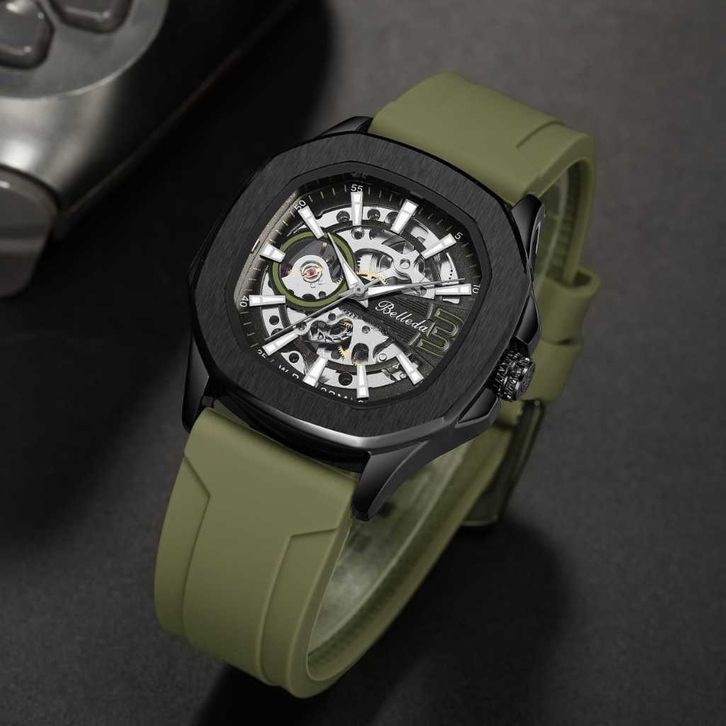 BELLEDA Jam Tangan Pria Belleda 9633 Tali Rubber Automatic Anti Air 3 Atm Original Populer