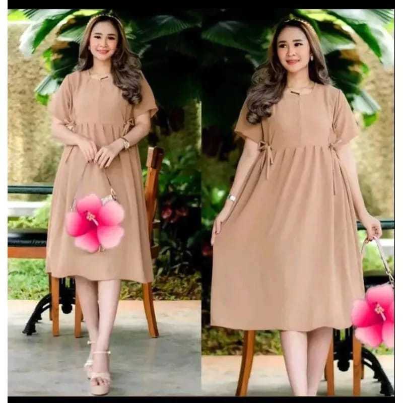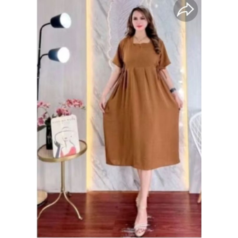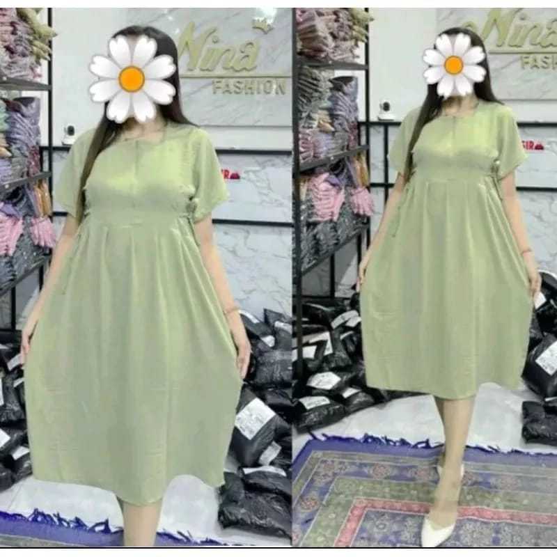 (Gratis Ongkir) Daster crinkle airflow retsleting depan busui frenly dress crinkle polos