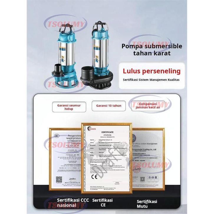 Pompa air celup kolam air Kotor 750W 2inch Stainless Submersible Pump TSOLUMY Pompa Kolam lkan atau Banjir pompa celup