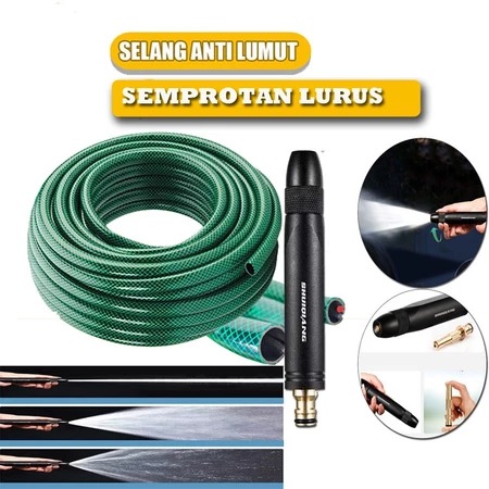 Paket Selang 5/8 Set Alat Cuci Motor Selang Air Serat Benang Hijau Semprotan Air Kuningan