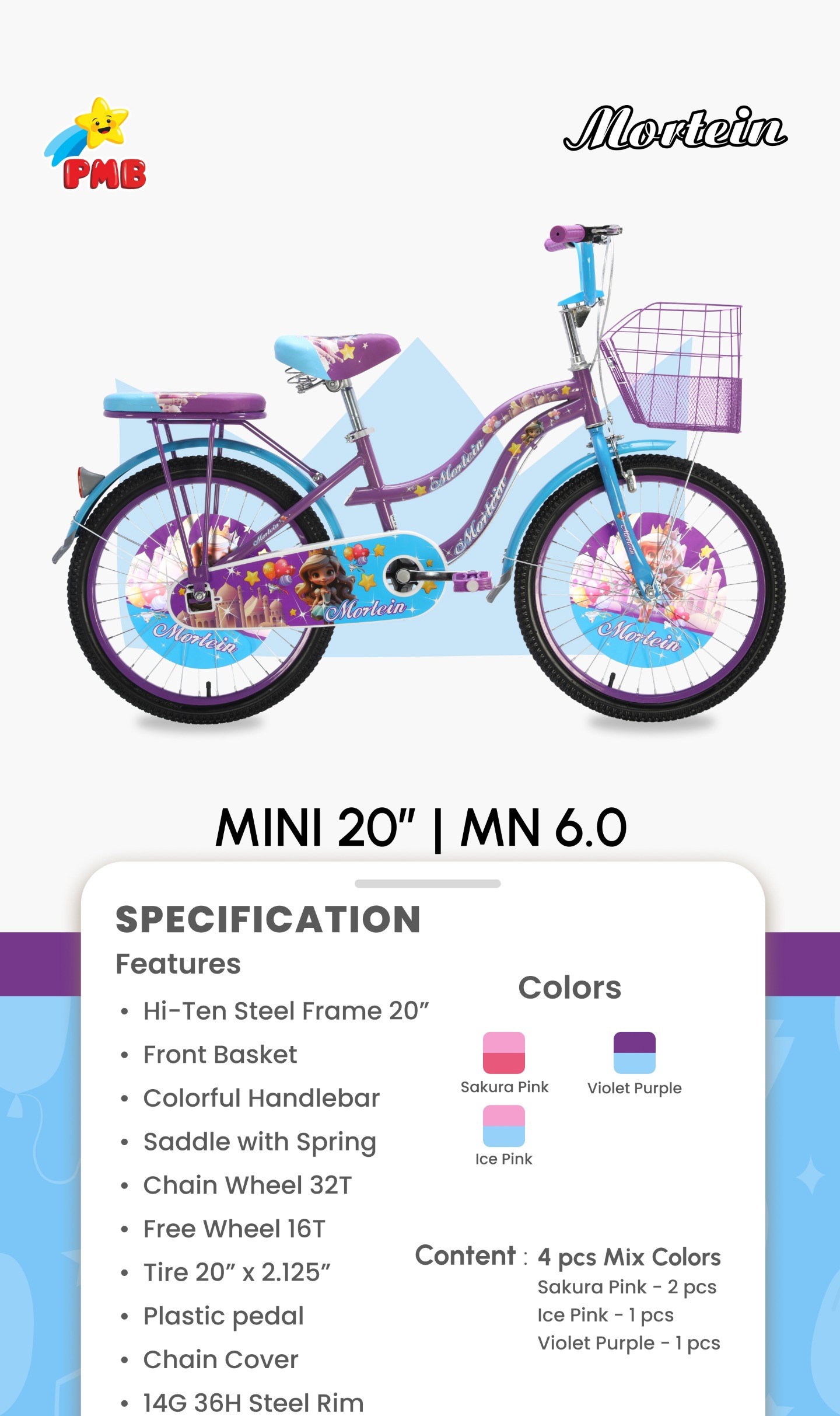 SEPEDA MORTEIN MINI 20 MN 6.0 sepeda roda dua sepeda keranjang sepeda keren HI-Ten steel frame 20 Free wheel sprocket P