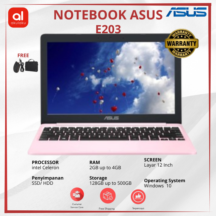 NOTEBOOK ASUS E203 SECOND RAM 4GB SSD 128GB WINDOWS 10 MURAH GARANSI