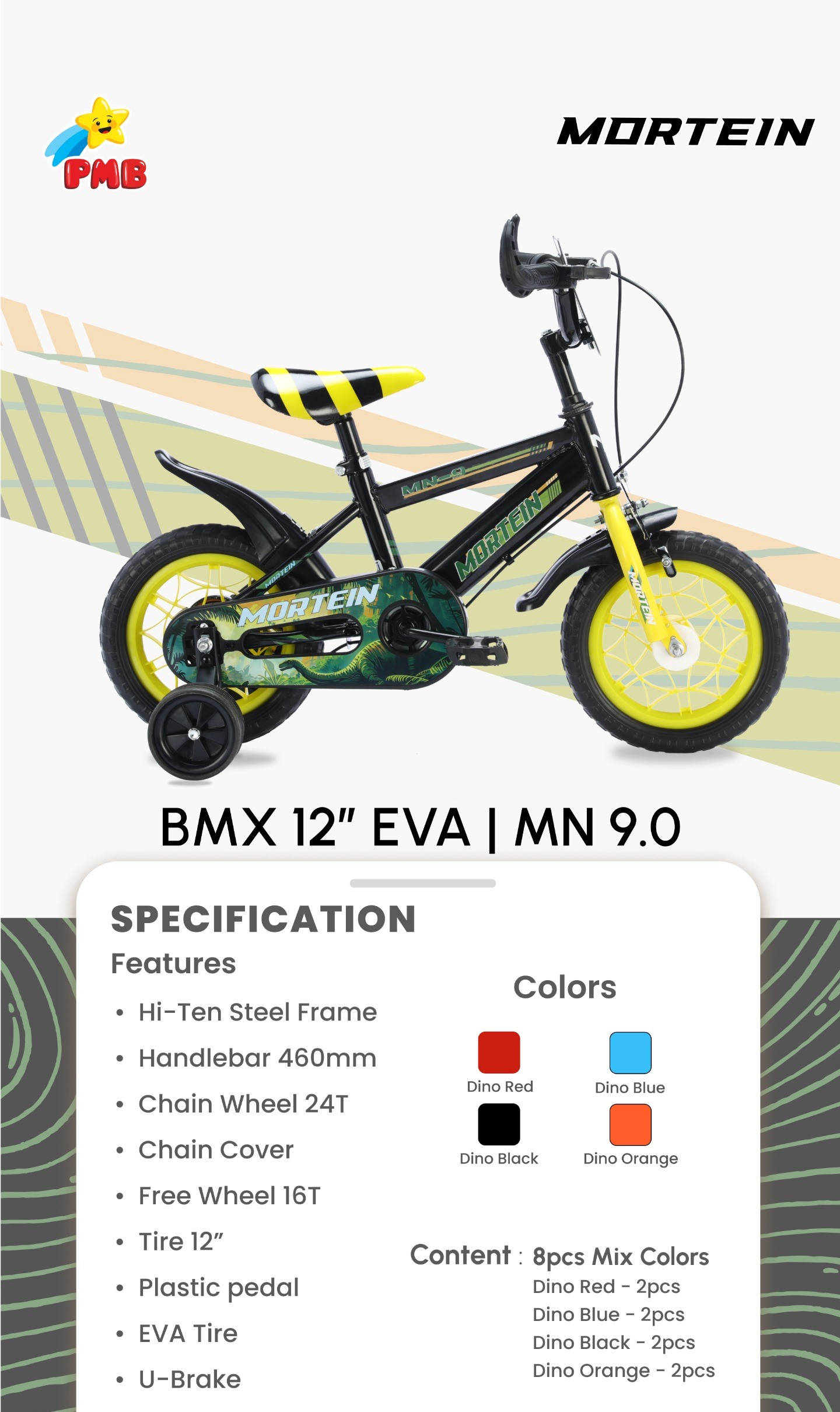 SEPEDA ANAK SEPEDA MORTEIN BMX 12 EVA MN 9.0 sepeda roda dua sepeda keren ban eva PMB TOYS