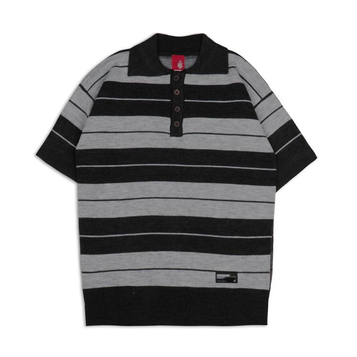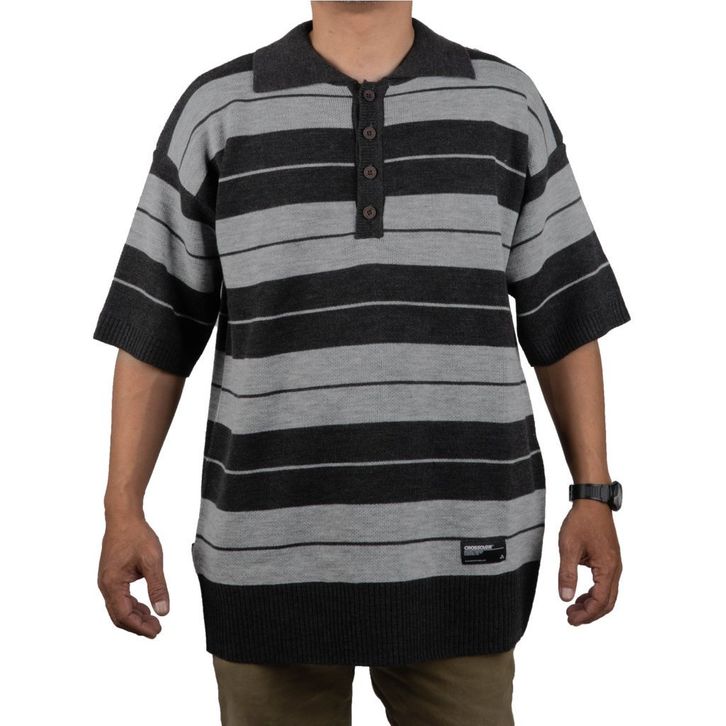 KAOS POLO KNIT SHIRT CROSSOVER "CHARLIE" MISTY GREY BLACK MISTY BEIGIE BROWN M L XL KAOS DISTRO PRIA KEKINIAN MURAH